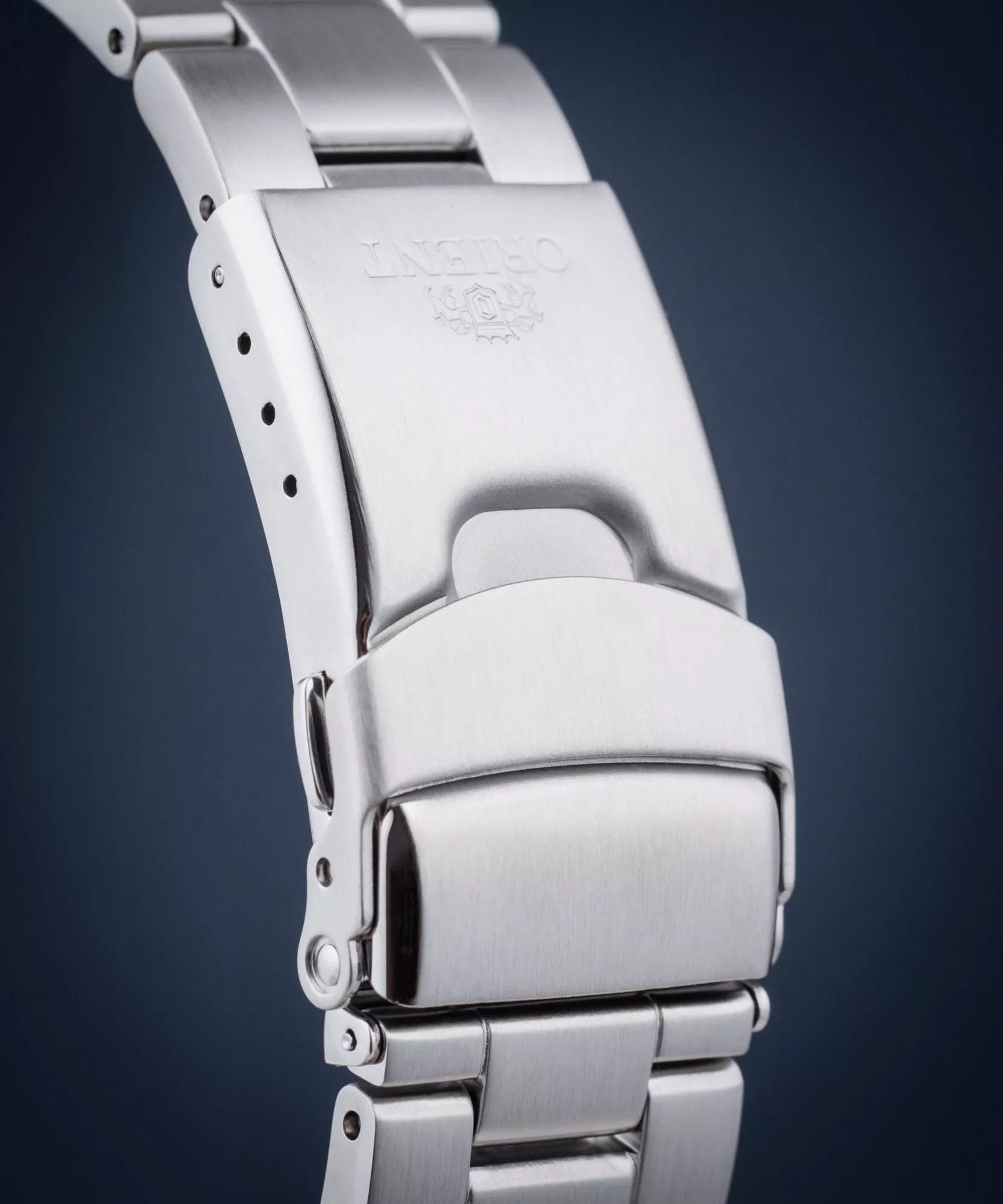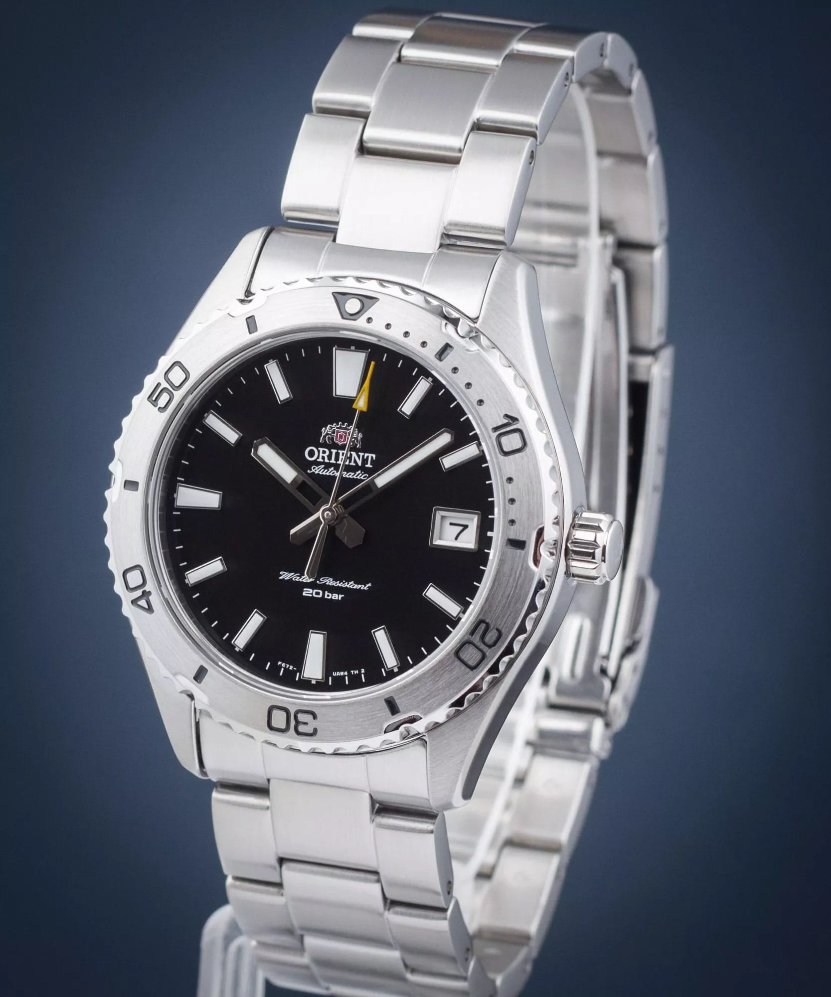 Мужские наручные часы Orient Diving Sport Automatic RA-AC0Q01B с надёжным автоматическим механизмом. Корпус и браслет часов изготовлены из нержавеющей стали. Сапфировое стеклоСапфировое стеклоПрочный и надёжный материал из кристалла сапфира синтетического происхождения, характеризующийся особой твёрдостью и устойчивостью к царапинам и повреждениям. высокой прозрачности с антибликовым покрытием. Стальной браслет на раскладной застёжкеРаскладная застёжкаТакой тип застёжки используется только на браслетах из металла. Она никогда не раскрывается полностью, происходит разделение на 2 и более частей. Раскладывающая застёжка снизит вероятность потери часов к минимуму.. Класс водозащиты: 200 метров, позволит плавать, нырять и заниматься другими водными видами спорта. Окошко дня недели и даты находится в положении 3 часа. Стрелки и метки с люминесцентным покрытиемЛюминесцентное покрытиеПозволяет считывать показания времени в темноте. Производители наносят на стрелки, часовые индексы, безель или поверхность циферблата светонакопительный состав, дающий холодное свечение.. Вращающийся безельБезельВнешний ободок, закрепляющий стекло. В спортивных часах так называется поворотное кольцо с делениями на циферблате, выполняет роль таймера – замеряет отрезки времени на шкале. Неподвижный безель – элемент декора. Однонаправленно вращающийся безель на дайверских часах позволяет фиксировать моменты погружения и выныривания на поверхность..