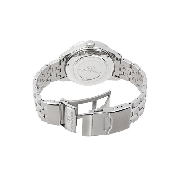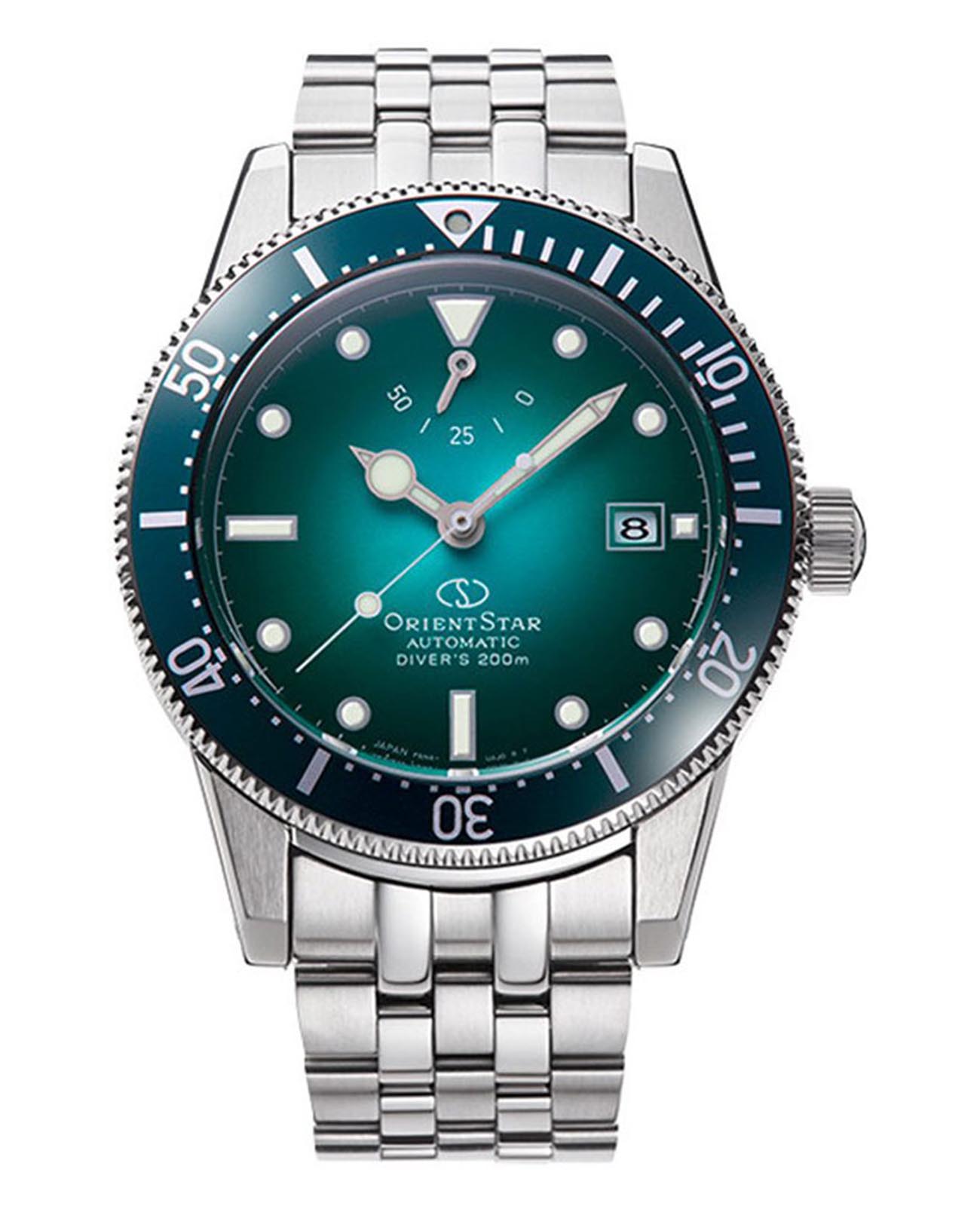 Модель Orient Star RE-AU0602E из серии Sports Diver — это профессиональные механические часы для подводных приключений и повседневного стиля с акцентом на надёжность и японскую эстетику. Корпус диаметром 41 мм выполнен из нержавеющей стали SUS316L, что гарантирует устойчивость к коррозии и высокую прочность. Односторонний безель из алюминия с насечками упрощает управление под водой, а заводная головка и задняя крышка завинчиваются для дополнительной защиты. Градиентный зелёный циферблат вдохновлён природными оттенками пещеры Рюсэндо. Часовые метки и стрелки покрыты люминесцентным покрытиемЛюминесцентное покрытиеПозволяет считывать показания времени в темноте. Производители наносят на стрелки, часовые индексы, безель или поверхность циферблата светонакопительный состав, дающий холодное свечение., обеспечивая отличную читаемость даже в полной темноте. На циферблате размещён индикатор запаса хода и окно даты. Циферблат защищён двойным выпуклым сапфировым стекломСапфировое стеклоПрочный и надёжный материал из кристалла сапфира синтетического происхождения, характеризующийся особой твёрдостью и устойчивостью к царапинам и повреждениям. с антибликовым покрытиемАнтибликовое покрытиеСлой оксида металла в 0,13-0,3 микрон, благодаря которому стекло часов не бликует и не отражает свет. Антибликовое покрытие уменьшает отражение света в 10 раз, обеспечивая отличную читаемость показателей циферблата.. Модель оснащена автоматическим калибром F6N47 с функцией ручного подзавода, остановкой секундной стрелки и запасом хода до 50 часов. Водонепроницаемость составляет 200 метров и соответствует стандарту ISO 6425, что делает часы полноценным дайвером. Браслет выполнен из стали с раскладной застёжкойРаскладная застёжкаТакой тип застёжки используется только на браслетах из металла. Она никогда не раскрывается полностью, происходит разделение на 2 и более частей. Раскладывающая застёжка снизит вероятность потери часов к минимуму. и системой удлинения для дайверского костюма. В комплекте предусмотрен дополнительный силиконовый ремешок. Orient Star RE-AU0602E — это надёжные, технически выверенные и эстетически продуманные часы, которые одинаково уверенно смотрятся под водой и в городских условиях.