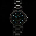 Многокомпонентный корпус из нержавеющей стали, керамический безельБезельВнешний ободок, закрепляющий стекло. В спортивных часах так называется поворотное кольцо с делениями на циферблате, выполняет роль таймера – замеряет отрезки времени на шкале. Неподвижный безель – элемент декора. Однонаправленно вращающийся безель на дайверских часах позволяет фиксировать моменты погружения и выныривания на поверхность. с минутной шкалой. Сапфировое стеклоСапфировое стеклоПрочный и надёжный материал из кристалла сапфира синтетического происхождения, характеризующийся особой твёрдостью и устойчивостью к царапинам и повреждениям., выпуклое с обеих сторон, внутреннее антибликовое покрытие. Прозрачная задняя крышка из сапфирового стеклаСапфировое стеклоПрочный и надёжный материал из кристалла сапфира синтетического происхождения, характеризующийся особой твёрдостью и устойчивостью к царапинам и повреждениям.. Стрелки и метки с люминесцентным покрытиемЛюминесцентное покрытиеПозволяет считывать показания времени в темноте. Производители наносят на стрелки, часовые индексы, безель или поверхность циферблата светонакопительный состав, дающий холодное свечение.. Завинчивающаяся заводная головка.