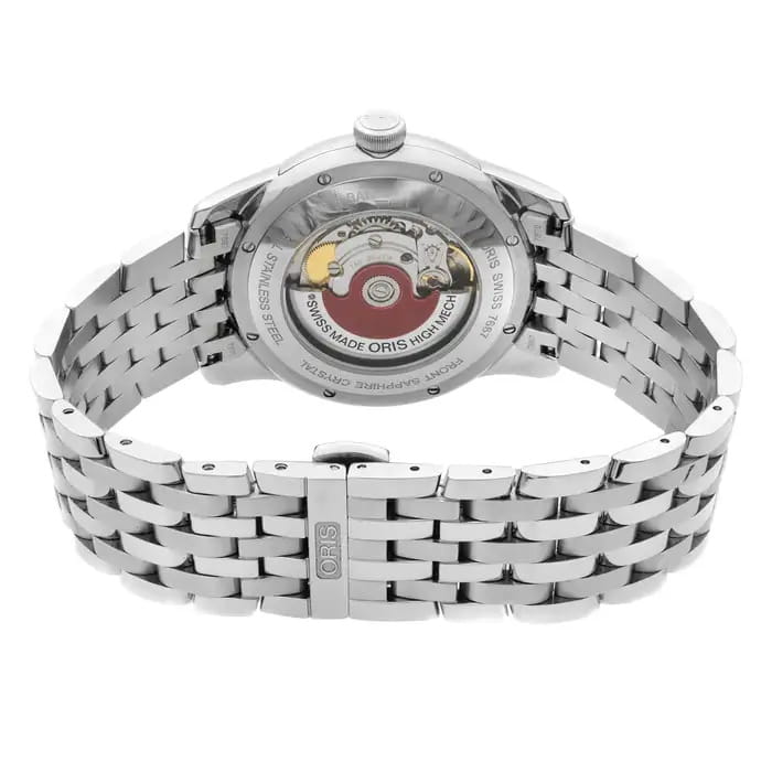Oris 01 749 7667 4051-07 8 21 77 Artelier – это элегантные часы, сочетающие в себе классический дизайн и современную функциональность. Корпус из нержавеющей стали диаметром 40,5 мм идеально сбалансирован и элегантен. Сапфировое стеклоСапфировое стеклоПрочный и надёжный материал из кристалла сапфира синтетического происхождения, характеризующийся особой твёрдостью и устойчивостью к царапинам и повреждениям. с антибликовым покрытием защищает циферблат от царапин и обеспечивает отличную читаемость при любом освещении. Стальной браслет на застёжке-бабочке с кнопкамиЗастёжка "бабочка"Такой вид застёжки дополняется предохранителями, помогающими избежать случайного раскрытия браслета. Обладают изящным исполнением. идеально дополняют дизайн часов, обеспечивая комфортное ношение. Люминесцентное покрытиеЛюминесцентное покрытиеПозволяет считывать показания времени в темноте. Производители наносят на стрелки, часовые индексы, безель или поверхность циферблата светонакопительный состав, дающий холодное свечение. стрелок на циферблате позволит следить за временем даже в полной темноте. Отображение даты в положении «6 часов». Два дополнительных циферблата: 60 секунд и 12 часов. Oris Calibre 749 базовый автоматический механизм SW 220-1 с 38-часовым запасом хода. Эти механические наручные часы станут вашим верным спутником в любых приключениях, сочетая в себе функциональность и элегантный дизайн. Идеальный выбор для тех, кто ценит качество и долговечность.
