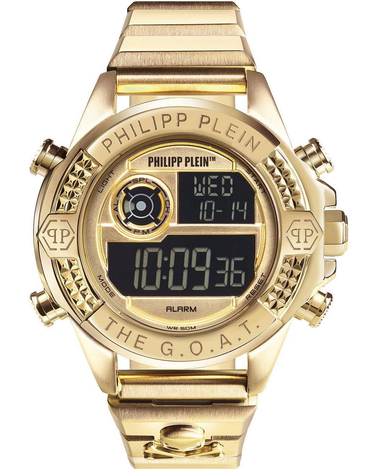 Яркие мужские часы Philipp Plein The G.O.A.T. PWFAA0321, кварцевый механизм с высокой точностью. Класс водозащиты: 50 метров, позволит защитить корпус от случайных брызг или капель дождя. Корпус часов изготовлен из стали, цвета.
