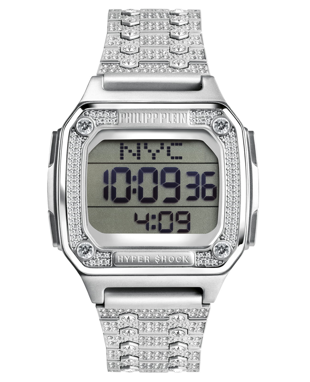 Электронные унисекс часы ХронографХронографФункция позволяет измерять отрезки времени с особой точностью: часы, минуты, секунды. Верным признаком хронографа является наличие на циферблате 3 дополнительных окошек-счётчиков. Philipp Plein Hyper Shock PWHAA1121, электронный механизм с высокой точностью. Класс водозащиты: 50 метров, позволит защитить корпус от случайных брызг или капель дождя. Прямоугольный корпус выполнен из нержавеющей стали с IP-покрытиемIP-покрытиеМетод ионного напыления. Демонстрирует повышенную устойчивость к истиранию, окислению и химическим веществам. Под воздействием высокого давления и температуры около 1500°C молекулы металла надёжно соединяются с частицами корпуса часов. серебристого цвета. Браслет из нержавеющей стали шириной 22 мм, застёжка «бабочка» с кнопкамиЗастёжка "бабочка"Такой вид застёжки дополняется предохранителями, помогающими избежать случайного раскрытия браслета. Обладают изящным исполнением. .