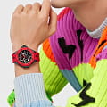 Эти бесподобные часы в стильном дизайне с точным и надежным механизмом завораживают своим корпусом геометричной формы и культовыми элементами бренда и без сомнений сделают мужской образ еще более харизматичным и брутальным. Скелетонизированные мужские механические часы с автоподзаводом. Необычный стальной корпус c частично сатинированной и полированной поверхностью. Циферблат декорирован логотипом бренда в положении 12 часов и изображением черепа с костями. Метки в виде штрихов. Минеральное стеклоМинеральное стеклоМинеральное стекло представляет собой искусственно выращенный минерал кварца. Такое стекло отличается особой устойчивостью к повреждениям и царапинам. Уступает по некоторым качествам сапфировому стеклу. устойчивое к мелким механическим повреждениям. Стрелки и метки с люминесцентным покрытиемЛюминесцентное покрытиеПозволяет считывать показания времени в темноте. Производители наносят на стрелки, часовые индексы, безель или поверхность циферблата светонакопительный состав, дающий холодное свечение.. Граненая заводная головка. Неподвижный безельБезельВнешний ободок, закрепляющий стекло. В спортивных часах так называется поворотное кольцо с делениями на циферблате, выполняет роль таймера – замеряет отрезки времени на шкале. Неподвижный безель – элемент декора. Однонаправленно вращающийся безель на дайверских часах позволяет фиксировать моменты погружения и выныривания на поверхность. из нержавеющей стали с IP-покрытиемIP-покрытиеМетод ионного напыления. Демонстрирует повышенную устойчивость к истиранию, окислению и химическим веществам. Под воздействием высокого давления и температуры около 1500°C молекулы металла надёжно соединяются с частицами корпуса часов.. На задней крышке имеется прозрачное окошко, через которое можно наблюдать работу механизма часов. Черный перфорированный силиконовый ремешок с классической застежкой и шестиугольным логотипом бренда. Фирменная дизайнерская упаковка.