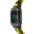Электронные унисекс часы с секундомеромСекундомерСекундоме́р — прибор, способный измерять интервалы времени с точностью до долей секунды. Philipp Plein Hyper Shock PWHAA1722, электронный механизм с высокой точностью. Класс водозащиты: 50 метров, позволит защитить корпус от случайных брызг или капель дождя. Прямоугольный корпус выполнен из нержавеющей стали с IP-покрытиемIP-покрытиеМетод ионного напыления. Демонстрирует повышенную устойчивость к истиранию, окислению и химическим веществам. Под воздействием высокого давления и температуры около 1500°C молекулы металла надёжно соединяются с частицами корпуса часов. черного цвета. Силиконовый ремешок цвета камуфляж (желто-зеленый) шириной 22 мм, стандартная застежка.