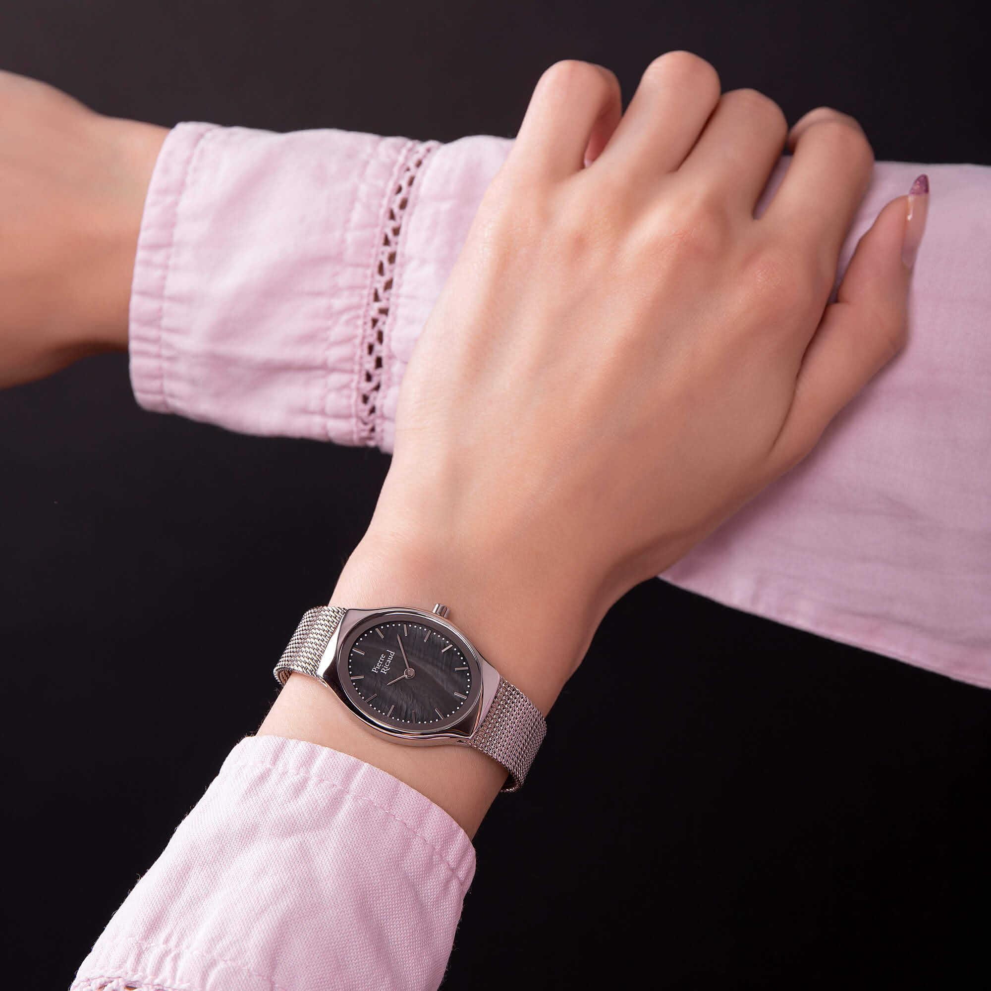 Женские немецкие часы с минеральным стекломМинеральное стеклоМинеральное стекло представляет собой искусственно выращенный минерал кварца. Такое стекло отличается особой устойчивостью к повреждениям и царапинам. Уступает по некоторым качествам сапфировому стеклу. Pierre Ricaud P22049.511EQ, кварцевый механизм с высокой точностью. Класс водозащиты: 30 метров, позволит защитить корпус от случайных брызг или капель дождя. Корпус часов изготовлен из стали. Стальной браслет на раскладной застёжкеРаскладная застёжкаТакой тип застёжки используется только на браслетах из металла. Она никогда не раскрывается полностью, происходит разделение на 2 и более частей. Раскладывающая застёжка снизит вероятность потери часов к минимуму..