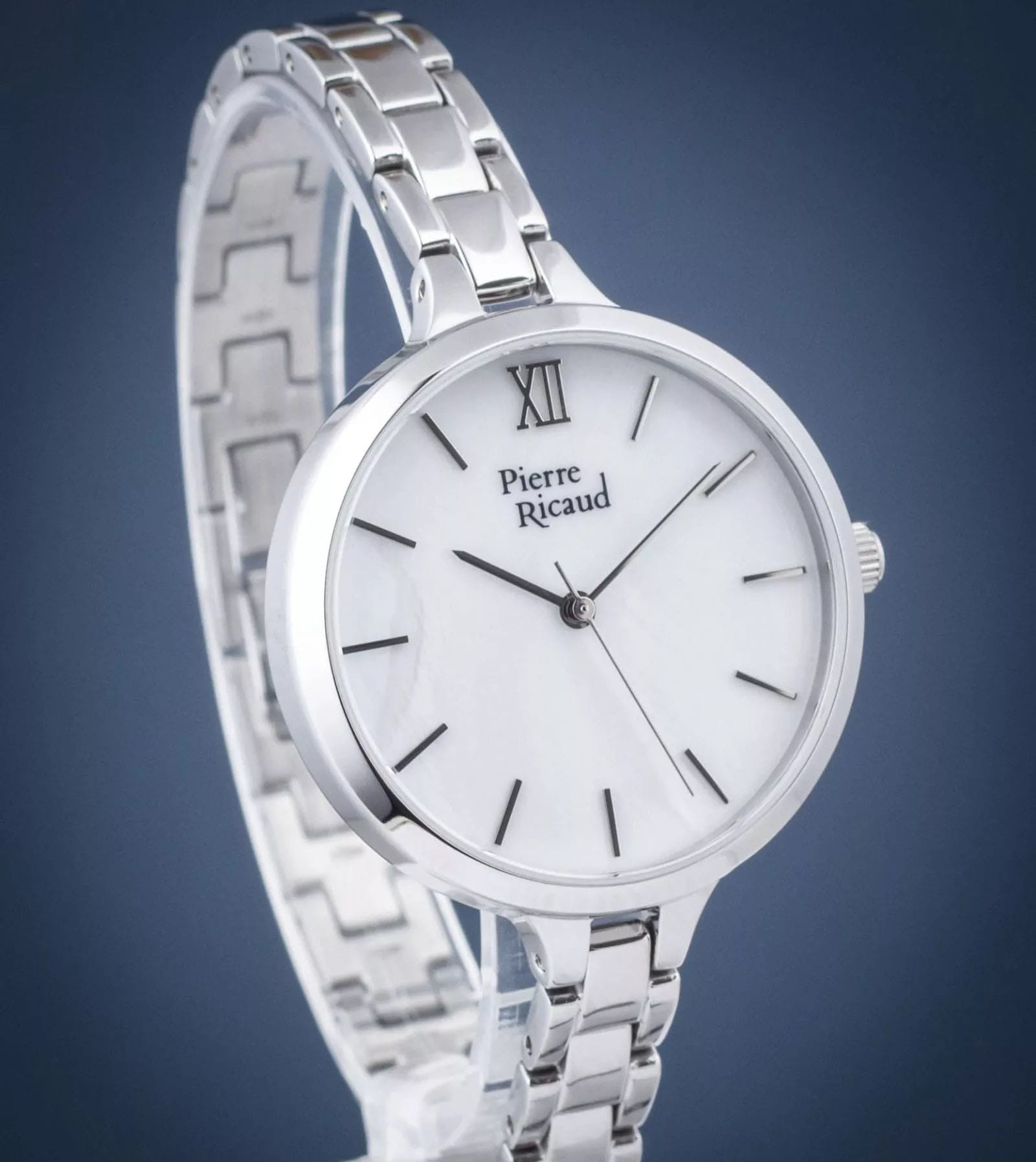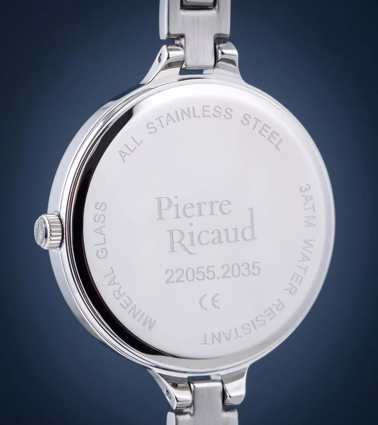 Женские кварцевые наручные часы с минеральным стекломМинеральное стеклоМинеральное стекло представляет собой искусственно выращенный минерал кварца. Такое стекло отличается особой устойчивостью к повреждениям и царапинам. Уступает по некоторым качествам сапфировому стеклу. Pierre Ricaud P22055.516FQ, кварцевый механизм с высокой точностью. Класс водозащиты: 30 метров, позволит защитить корпус от случайных брызг или капель дождя. Корпус часов изготовлен из стали.  Стальной браслет на ювелирной застёжке.