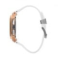 Мужские кварцевые часы Quantum из коллекции Hunter — яркий пример современного дизайна и продуманной функциональности. Прямоугольный корпус из нержавеющей стали с PVD-покрытиемPVDУльтратонкое покрытие наносится в технике вакуумного напыления, сочетает в себе нитрид титана особой прочности со слоем золота или оксида хрома. Несёт в себе декоративную или защитную функцию. цвета розового золота создаёт выразительный акцент, гармонично сочетающийся с лаконичным белым циферблатом. Часы оснащены хронографомХронографФункция позволяет измерять отрезки времени с особой точностью: часы, минуты, секунды. Верным признаком хронографа является наличие на циферблате 3 дополнительных окошек-счётчиков. и окошком даты, а минеральное стеклоМинеральное стеклоМинеральное стекло представляет собой искусственно выращенный минерал кварца. Такое стекло отличается особой устойчивостью к повреждениям и царапинам. Уступает по некоторым качествам сапфировому стеклу. с антибликовым покрытием обеспечивает чёткость восприятия в любых условиях. Стрелки с люминесцентным покрытиемЛюминесцентное покрытиеПозволяет считывать показания времени в темноте. Производители наносят на стрелки, часовые индексы, безель или поверхность циферблата светонакопительный состав, дающий холодное свечение.. Надёжный кварцевый механизм Seiko гарантирует точность хода, а водонепроницаемость 100 м делает модель подходящей для повседневного ношения и активного отдыха. Белый силиконовый ремешок на стандартной застёжке подчёркивает спортивный характер аксессуара, оставаясь при этом универсальным и удобным. Идеальный выбор для тех, кто ценит турецкий дизайн и современный стиль.