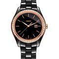 Циферблат привлекает насыщенным тёмным оттенком, его минималистичный дизайн позволяет носить часы с любыми нарядами. Элемент роскоши добавляют 60 бриллиантов в 0,390 карат на безелеБезельВнешний ободок, закрепляющий стекло. В спортивных часах так называется поворотное кольцо с делениями на циферблате, выполняет роль таймера – замеряет отрезки времени на шкале. Неподвижный безель – элемент декора. Однонаправленно вращающийся безель на дайверских часах позволяет фиксировать моменты погружения и выныривания на поверхность., что позволяет создать действительно шикарный образ. Модель оснащена кварцевым калибром ETA 956.412, сохраняющим высокую точность хода. Часы сделаны из высокотехнологичной керамикиВысокотехнологичная керамикаИнновационный запатентованный Rado материал с гладкой или матовой поверхностью. Керамика за счёт кристаллической структуры обладает повышенной устойчивостью от возникновения царапин. Материал способен принимать температуру тела человека, обеспечивая невероятный комфорт при ношении., корпус усилен нержавеющей сталью 316L. PVD-покрытиеPVDУльтратонкое покрытие наносится в технике вакуумного напыления, сочетает в себе нитрид титана особой прочности со слоем золота или оксида хрома. Несёт в себе декоративную или защитную функцию. цвета розового золота. Антибликовое покрытие стекла из сапфира. Водозащита 50 метров. . Отображение даты. Диаметр корпуса: 36 мм.