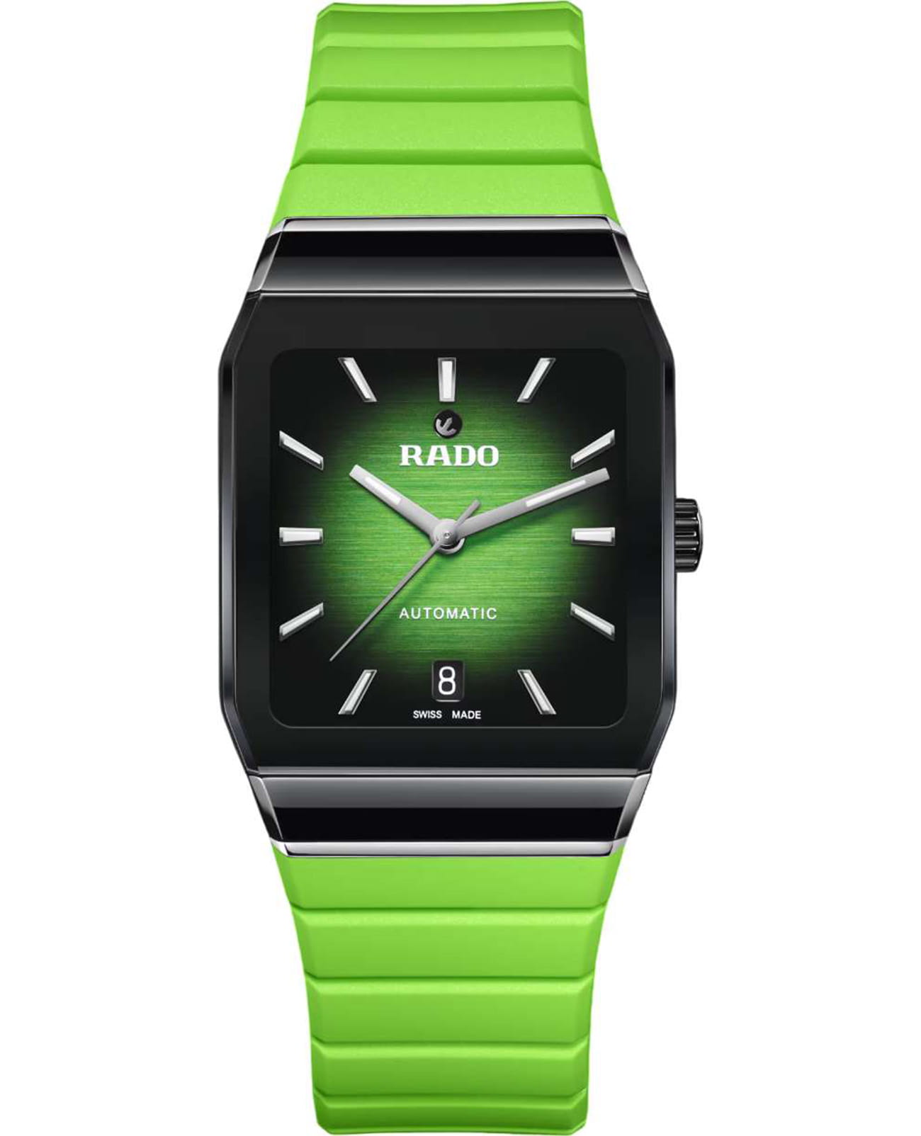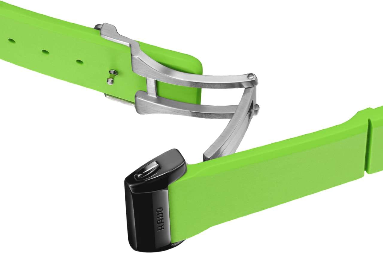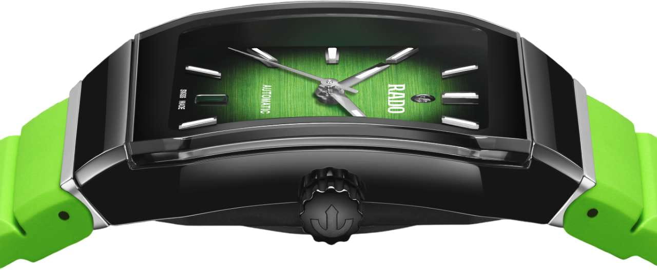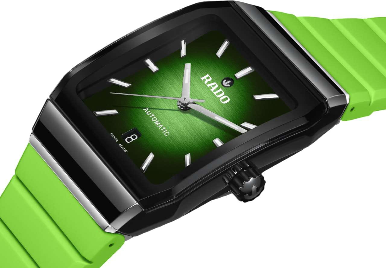Универсальные механические часы с автоподзаводом Rado Anatom — это символ новаторского дизайна и максимального комфорта. Корпус размером 32,5 мм и толщиной 11,3 мм выполнен из высокотехнологичной керамикиВысокотехнологичная керамикаИнновационный запатентованный Rado материал с гладкой или матовой поверхностью. Керамика за счёт кристаллической структуры обладает повышенной устойчивостью от возникновения царапин. Материал способен принимать температуру тела человека, обеспечивая невероятный комфорт при ношении. и нержавеющей стали. Циферблат с градиентом от чёрного к зелёному оформлен накладными индексами и стрелками с люминесцентным покрытиемЛюминесцентное покрытиеПозволяет считывать показания времени в темноте. Производители наносят на стрелки, часовые индексы, безель или поверхность циферблата светонакопительный состав, дающий холодное свечение. Super-Luminova®, обеспечивающим отличную читаемость в темноте. Циферблат защищён сапфировым стекломСапфировое стеклоПрочный и надёжный материал из кристалла сапфира синтетического происхождения, характеризующийся особой твёрдостью и устойчивостью к царапинам и повреждениям. с металлизированным покрытием и симметричными фасками. В положении 12 часов расположен подвижной якорь — символ бренда, а в положении 6 часов — окошко даты. Механизм — автоматический с антимагнитной пружиной Nivachron™Nivachron™Специально разработанный инновационный сплав Nivachron™ повышает устойчивость часов к воздействию магнитных полей., отрегулированный в пяти положениях, с запасом хода 72 часа. Прозрачная задняя крышка с сапфировым стеклом позволяет наблюдать за работой механизма. Часы оснащены конусообразным каучуковым ремешком зелёного цвета и трёхсекционной застёжкой из матовой нержавеющей стали с крышкой из полированной керамики. Водонепроницаемость 50 м позволяет использовать часы в повседневных условиях. Гарантия — 2 года. Идеальный выбор для тех, кто ценит уникальный дизайн, комфорт и швейцарское качество.