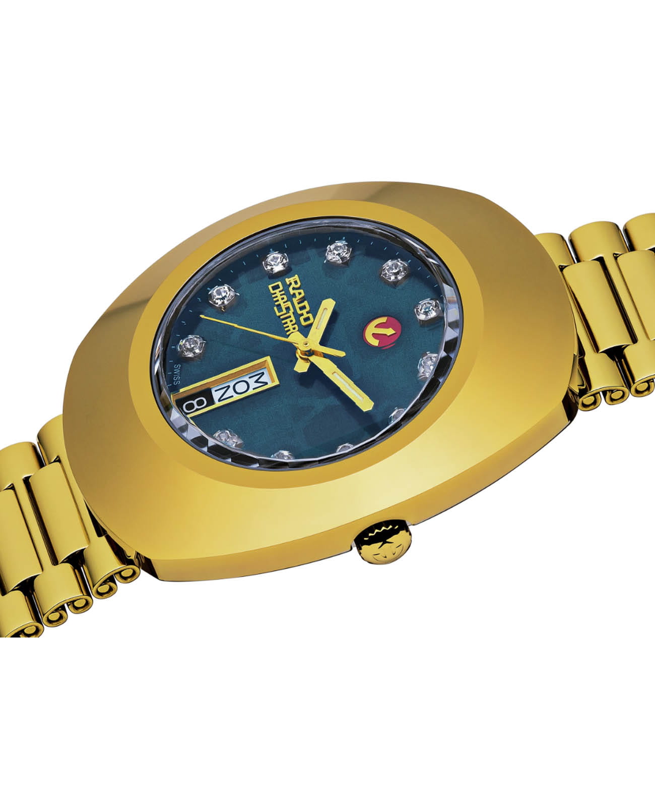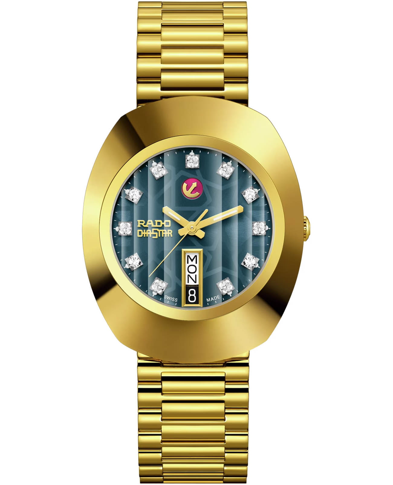 Мужские часы Rado The Original Automatic R12413523 с надёжным автоматическим механизмом. Корпус и браслет часов выполнены из нержавеющей стали c PVD-покрытиемPVDУльтратонкое покрытие наносится в технике вакуумного напыления, сочетает в себе нитрид титана особой прочности со слоем золота или оксида хрома. Несёт в себе декоративную или защитную функцию.. Стальной браслет на раскладной застёжкеРаскладная застёжкаТакой тип застёжки используется только на браслетах из металла. Она никогда не раскрывается полностью, происходит разделение на 2 и более частей. Раскладывающая застёжка снизит вероятность потери часов к минимуму.. Класс водозащиты: 30 метров, позволит защитить корпус от случайных брызг или капель дождя. Циферблат с узорами инкрустирован сапфирами. Окошко даты и дня недели находится в положении 6 часов. Стрелки и метки с люминесцентным покрытиемЛюминесцентное покрытиеПозволяет считывать показания времени в темноте. Производители наносят на стрелки, часовые индексы, безель или поверхность циферблата светонакопительный состав, дающий холодное свечение..