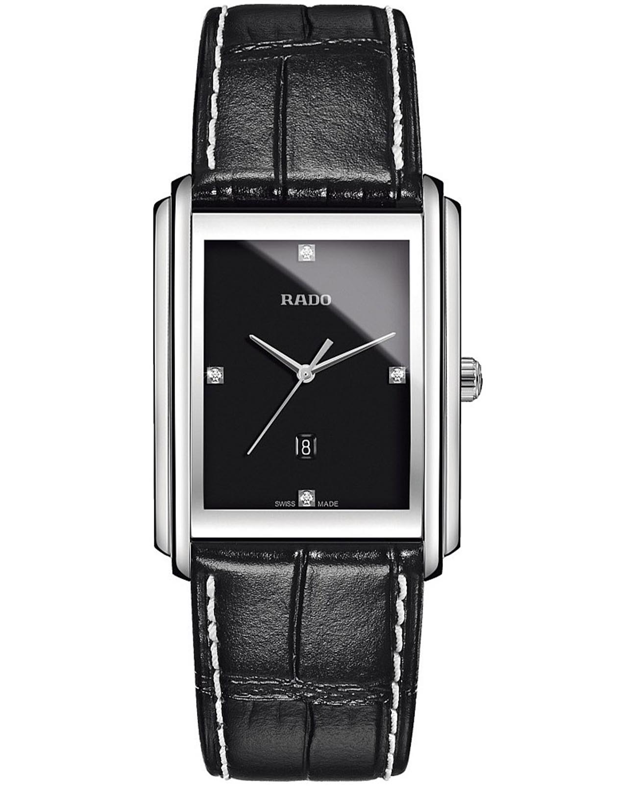Женские часы Rado Integral Diamonds R20997715 с надёжным кварцевым механизмом. Сапфировое стеклоСапфировое стеклоПрочный и надёжный материал из кристалла сапфира синтетического происхождения, характеризующийся особой твёрдостью и устойчивостью к царапинам и повреждениям. устойчивое к мелким механическим повреждениям. Корпус выполнен из нержавеющей стали. Циферблат инкрустирован бриллиантами. Окошко даты находится в положении 6 часов. Класс водозащиты: 50 метров, позволит защитить корпус от случайных брызг или капель дождя. Кожаный ремешок на застёжке «бабочке» с кнопкамиЗастёжка "бабочка"Такой вид застёжки дополняется предохранителями, помогающими избежать случайного раскрытия браслета. Обладают изящным исполнением. . Бриллианты отмечают позиции 3, 6, 9 и 12 часов.