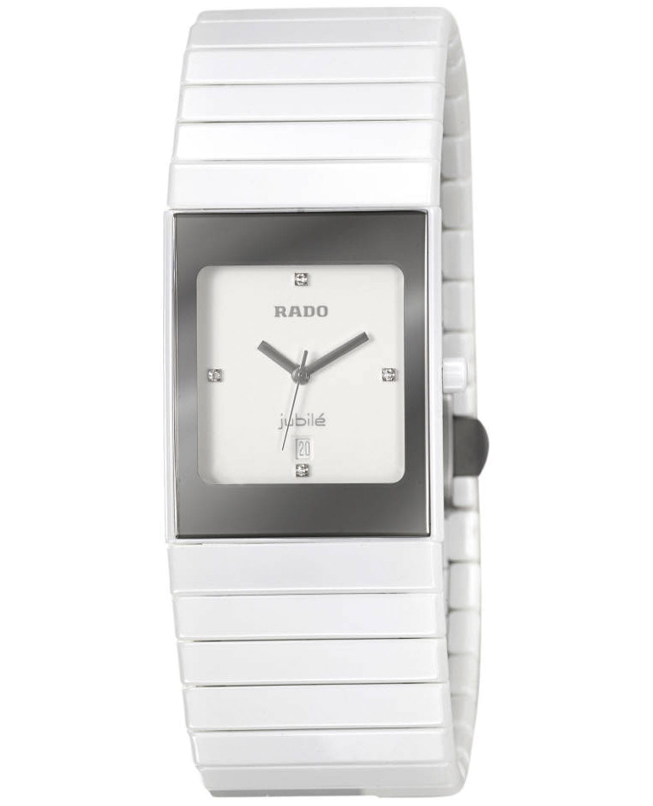 Швейцарские женские Rado Ceramica R21982702, кварцевый механизм с высокой точностью. Сапфировое стеклоСапфировое стеклоПрочный и надёжный материал из кристалла сапфира синтетического происхождения, характеризующийся особой твёрдостью и устойчивостью к царапинам и повреждениям. устойчивое к появлению царапин, обладающее высокой прозрачностью. Корпус часов изготовлен из нержавеющей стали и керамики. Окошко даты расположено в положении "6" часов. Класс водозащиты: 30 метров, позволит защитить корпус от случайных брызг или капель дождя. Керамический браслет на раскладной застёжкеРаскладная застёжкаТакой тип застёжки используется только на браслетах из металла. Она никогда не раскрывается полностью, происходит разделение на 2 и более частей. Раскладывающая застёжка снизит вероятность потери часов к минимуму.. Алмазные маркеры в положениях 3, 6, 9 и 12 часов.