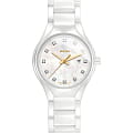 Премиальная модель с перламутровым циферблатом привлекает изящным силуэтом, это отличный вариант для дополнения делового костюма или вечернего наряда. Перед сиянием россыпи 12 бриллиантов просто невозможно устоять. Часы оснащены швейцарским механизмом ETA 956.112. Корпус и браслет из высокотехнологичной плазменной керамикиВысокотехнологичная плазменная керамикаИнновационный материал, технология запатентована. Выплавление керамики осуществляется в печи при 20 000 °C, белоснежный материал под воздействием ультравысокой температуры приобретает уникальный блеск, присущий металлам.. Сапфировое стекло, устойчивое к возникновению царапин. Водонепроницаемость 5 бар. . Апертура даты. Диаметр корпуса: 30 мм.