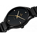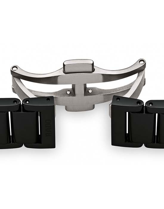 Глянцевый корпус представлен в оригинальном дизайне, его линии плавно перетекают в браслет. Наручные часы выполнены из высокотехнологичной керамикиВысокотехнологичная керамикаИнновационный запатентованный Rado материал с гладкой или матовой поверхностью. Керамика за счёт кристаллической структуры обладает повышенной устойчивостью от возникновения царапин. Материал способен принимать температуру тела человека, обеспечивая невероятный комфорт при ношении., материал не вызывает аллергии и обеспечивает невероятный комфорт при ношении. Минималистичный циферблат инкрустирован 4 бриллиантами в 0,040 карат. Швейцарский кварцевый калибр ETA 955.112. Сапфировое стекло устойчиво к образованию царапин. Золотистые стрелки с люминесцентной подсветкойЛюминесцентное покрытиеПозволяет считывать показания времени в темноте. Производители наносят на стрелки, часовые индексы, безель или поверхность циферблата светонакопительный состав, дающий холодное свечение.. Водостойкость 5 бар. . Отображение даты. Диаметр корпуса: 40 мм.