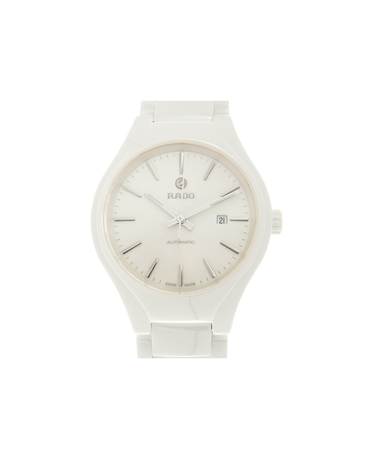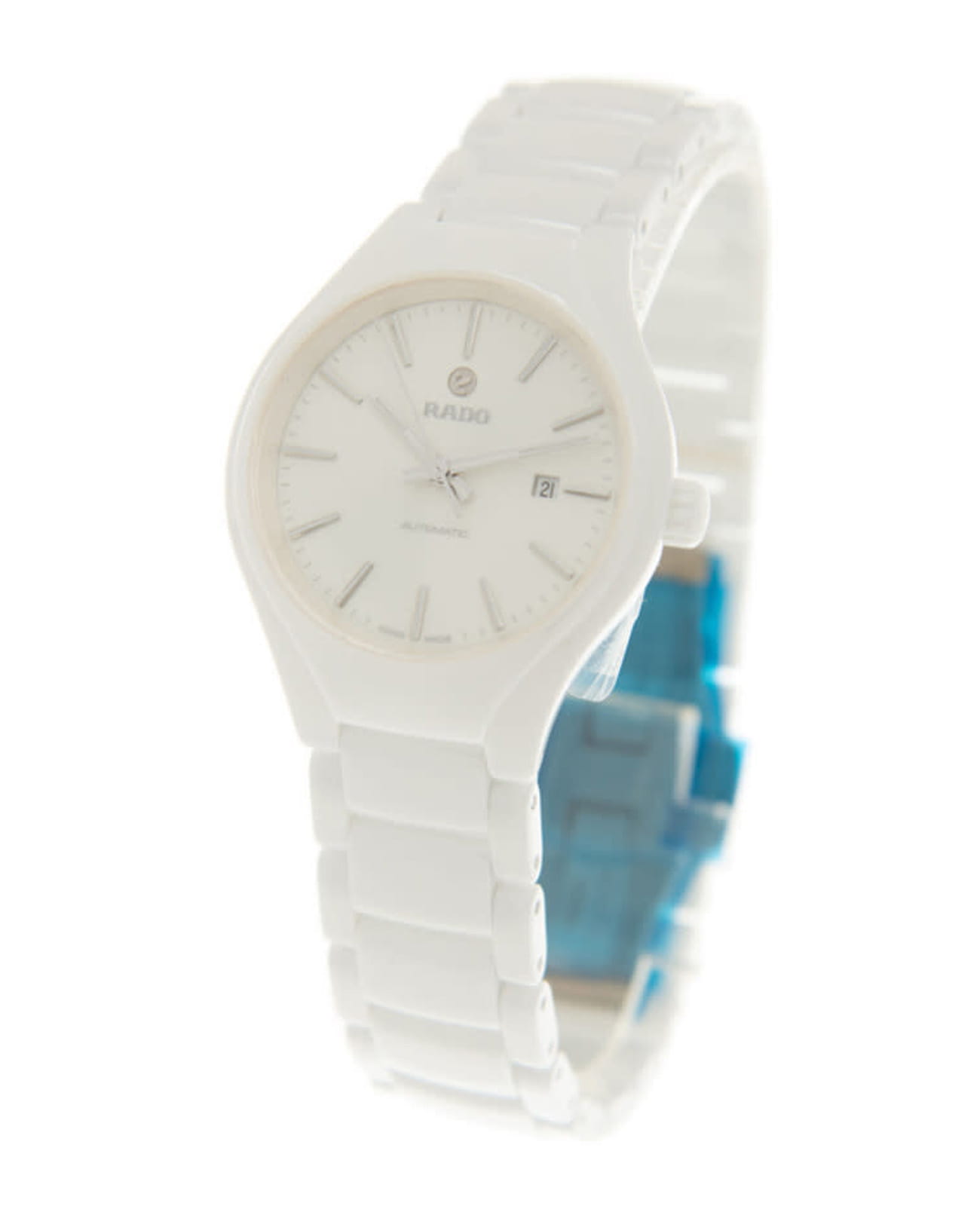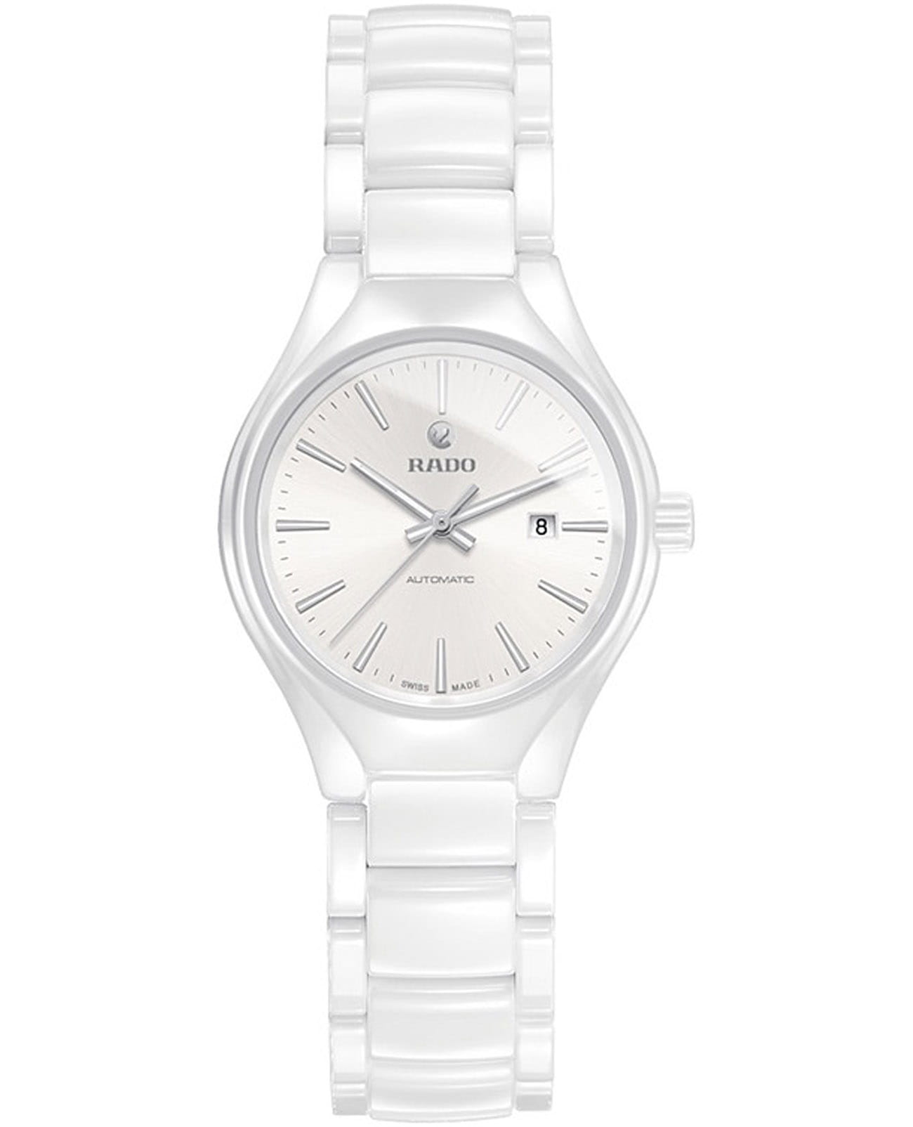 Женские механические швейцарские часы с автоподзаводом Rado True R27244012. Сапфировое стеклоСапфировое стеклоПрочный и надёжный материал из кристалла сапфира синтетического происхождения, характеризующийся особой твёрдостью и устойчивостью к царапинам и повреждениям. устойчивое к появлению царапин, обладающее высокой прозрачностью. Корпус часов изготовлен из высокотехнологичной керамикиВысокотехнологичная керамикаИнновационный запатентованный Rado материал с гладкой или матовой поверхностью. Керамика за счёт кристаллической структуры обладает повышенной устойчивостью от возникновения царапин. Материал способен принимать температуру тела человека, обеспечивая невероятный комфорт при ношении.. Окошко даты находится в положении 3 часа. Стрелки с люминесцентным покрытиемЛюминесцентное покрытиеПозволяет считывать показания времени в темноте. Производители наносят на стрелки, часовые индексы, безель или поверхность циферблата светонакопительный состав, дающий холодное свечение.. Класс водозащиты: 30 метров, позволит защитить корпус от случайных брызг или капель дождя. Браслет из высокотехнологичной плазменной керамикиВысокотехнологичная плазменная керамикаИнновационный материал, технология запатентована. Выплавление керамики осуществляется в печи при 20 000 °C, белоснежный материал под воздействием ультравысокой температуры приобретает уникальный блеск, присущий металлам. на застёжке «бабочка» с кнопкамиЗастёжка "бабочка"Такой вид застёжки дополняется предохранителями, помогающими избежать случайного раскрытия браслета. Обладают изящным исполнением. .