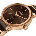 Швейцарские женские механические часы с автоматическим подзаводом Rado Centrix Automatic Diamonds R30019302. Корпус часов изготовлен из нержавеющей стали с PVD-покрытиемPVDУльтратонкое покрытие наносится в технике вакуумного напыления, сочетает в себе нитрид титана особой прочности со слоем золота или оксида хрома. Несёт в себе декоративную или защитную функцию.. Браслет из стали и высокотехнологичной керамикиВысокотехнологичная керамикаИнновационный запатентованный Rado материал с гладкой или матовой поверхностью. Керамика за счёт кристаллической структуры обладает повышенной устойчивостью от возникновения царапин. Материал способен принимать температуру тела человека, обеспечивая невероятный комфорт при ношении. на раскладной застёжкеРаскладная застёжкаТакой тип застёжки используется только на браслетах из металла. Она никогда не раскрывается полностью, происходит разделение на 2 и более частей. Раскладывающая застёжка снизит вероятность потери часов к минимуму.. Сапфировое стеклоСапфировое стеклоПрочный и надёжный материал из кристалла сапфира синтетического происхождения, характеризующийся особой твёрдостью и устойчивостью к царапинам и повреждениям. устойчивое к мелким механическим повреждениям. Класс водозащиты: 50 метров, позволит защитить корпус от случайных брызг или капель дождя. Окошко даты находится в положении 6 часов.