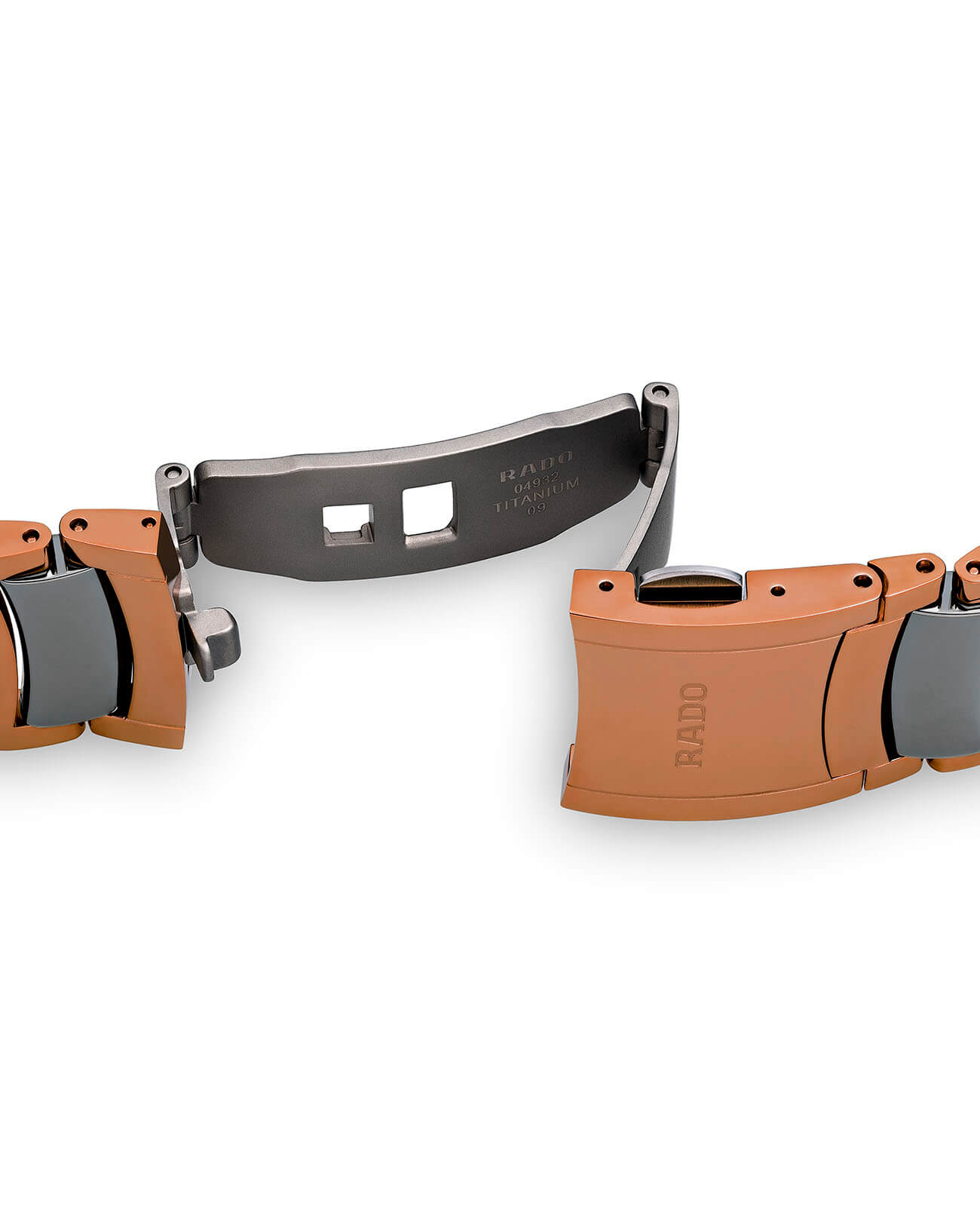 Наручные часы премиальной категории объединяют безупречность стиля и высокую точность хода, позволяя чувствовать себя на высоте в любой ситуации. Привлекательно выглядит сочетание нержавеющей стали 316L с цветным PVD-покрытиемPVDУльтратонкое покрытие наносится в технике вакуумного напыления, сочетает в себе нитрид титана особой прочности со слоем золота или оксида хрома. Несёт в себе декоративную или защитную функцию. и высокотехнологичной керамикиВысокотехнологичная керамикаИнновационный запатентованный Rado материал с гладкой или матовой поверхностью. Керамика за счёт кристаллической структуры обладает повышенной устойчивостью от возникновения царапин. Материал способен принимать температуру тела человека, обеспечивая невероятный комфорт при ношении., такое решение нашло воплощение в браслете. Модель оснащена автоматическим механизмом ETA C07.611, сохраняющим 80-часовой запас хода. Прозрачная задняя крышка. Стекло из сапфира. Индикация числа. Диаметр корпуса: 38 мм.