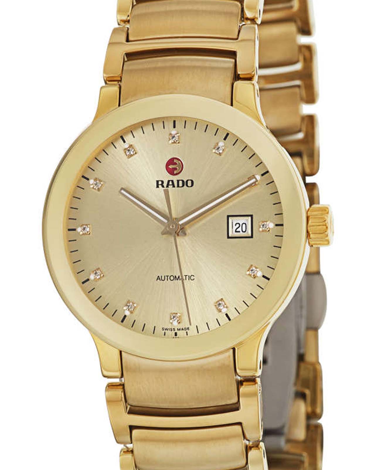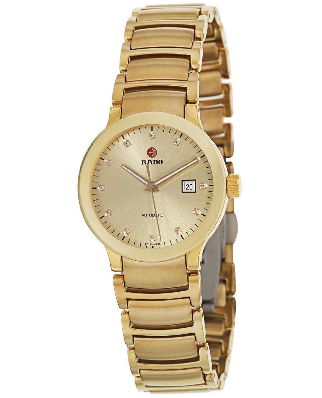 Швейцарские женские механические часы с автоподзаводом Rado Centrix R30280703. Сапфировое стеклоСапфировое стеклоПрочный и надёжный материал из кристалла сапфира синтетического происхождения, характеризующийся особой твёрдостью и устойчивостью к царапинам и повреждениям. устойчивое к появлению царапин, обладающее высокой прозрачностью. Корпус часов изготовлен из нержавеющей стали с PVD-покрытиемPVDУльтратонкое покрытие наносится в технике вакуумного напыления, сочетает в себе нитрид титана особой прочности со слоем золота или оксида хрома. Несёт в себе декоративную или защитную функцию.. Окошко даты находится в положении 3 часа. Циферблат украшен бриллиантами. Стрелки с люминесцентным покрытиемЛюминесцентное покрытиеПозволяет считывать показания времени в темноте. Производители наносят на стрелки, часовые индексы, безель или поверхность циферблата светонакопительный состав, дающий холодное свечение.. Класс водозащиты: 30 метров, позволит защитить корпус от случайных брызг или капель дождя. Браслет из нержавеющей стали с PVD-покрытиемPVDУльтратонкое покрытие наносится в технике вакуумного напыления, сочетает в себе нитрид титана особой прочности со слоем золота или оксида хрома. Несёт в себе декоративную или защитную функцию. на раскладной застёжкеРаскладная застёжкаТакой тип застёжки используется только на браслетах из металла. Она никогда не раскрывается полностью, происходит разделение на 2 и более частей. Раскладывающая застёжка снизит вероятность потери часов к минимуму..