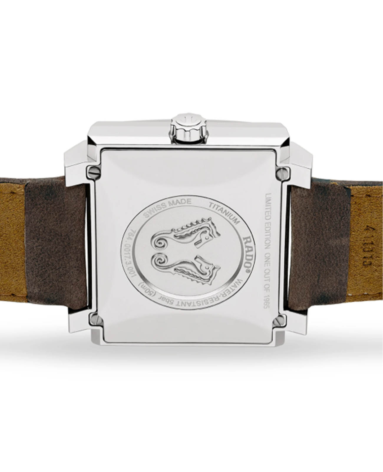 Часы Rado Watch Tradition 1965 XL ограниченной серией R33017205. Вдохновленные видом на горизонт Манхэттена, часы 1965 original отличаются неповторимым геометрическим дизайном, включающим такие элементы, как прямоугольные часовые и минутные метки. Квадратное окошко для индикации даты и культовый красный якорь Rado в положении "9 часов".Часы будут самыми популярными благодаря классической сине-черной цветовой гамме, легкому титановому корпусу и впечатляющему автоматическому калибру. ETA C07.621. Сапфировое стеклоСапфировое стеклоПрочный и надёжный материал из кристалла сапфира синтетического происхождения, характеризующийся особой твёрдостью и устойчивостью к царапинам и повреждениям.. Корпус из титана. Лимитированная серия - 1965 экземпляров.