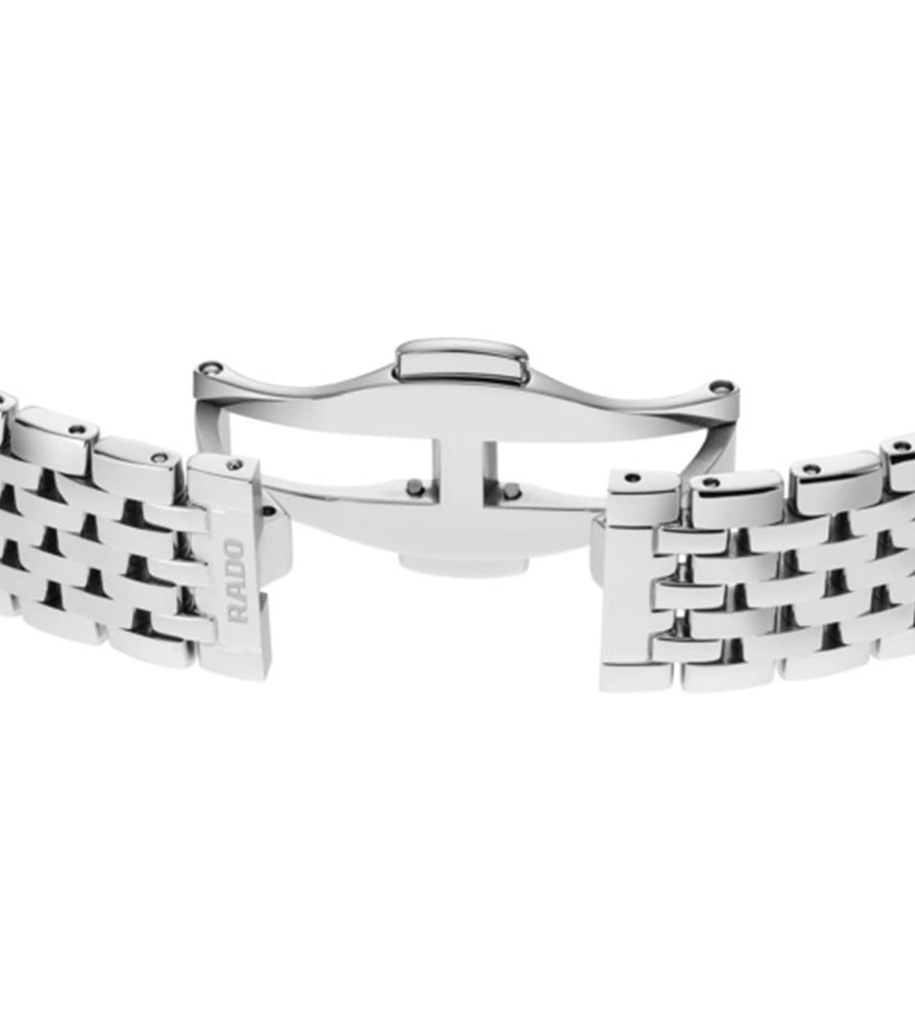 Женские швейцарские кварцевые часы Rado Florence Classic R48913163, кварцевый механизм с высокой точностью. Сапфировое стеклоСапфировое стеклоПрочный и надёжный материал из кристалла сапфира синтетического происхождения, характеризующийся особой твёрдостью и устойчивостью к царапинам и повреждениям. устойчивое к появлению царапин, обладающее высокой прозрачностью. Класс водозащиты: 50 метров, позволит защитить корпус от случайных брызг или капель дождя. Корпус и браслет часов изготовлены из стали. БезельБезельВнешний ободок, закрепляющий стекло. В спортивных часах так называется поворотное кольцо с делениями на циферблате, выполняет роль таймера – замеряет отрезки времени на шкале. Неподвижный безель – элемент декора. Однонаправленно вращающийся безель на дайверских часах позволяет фиксировать моменты погружения и выныривания на поверхность. с PVD-покрытиемPVDУльтратонкое покрытие наносится в технике вакуумного напыления, сочетает в себе нитрид титана особой прочности со слоем золота или оксида хрома. Несёт в себе декоративную или защитную функцию.. Окошко даты находится в положении 6 часов.
