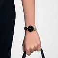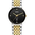 Браслет часов выполнен из стали с частичным PVD-покрытиемPVDУльтратонкое покрытие наносится в технике вакуумного напыления, сочетает в себе нитрид титана особой прочности со слоем золота или оксида хрома. Несёт в себе декоративную или защитную функцию., что добавляет им дополнительного блеска и прочности. Застёжка выполнена в виде «бабочки»Застёжка "бабочка"Такой вид застёжки дополняется предохранителями, помогающими избежать случайного раскрытия браслета. Обладают изящным исполнением. , что обеспечивает удобное и надежное крепление на запястье.