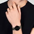 Корпус часов изготовлен из нержавеющей стали, что обеспечивает высокую прочность и долговечность. БезельБезельВнешний ободок, закрепляющий стекло. В спортивных часах так называется поворотное кольцо с делениями на циферблате, выполняет роль таймера – замеряет отрезки времени на шкале. Неподвижный безель – элемент декора. Однонаправленно вращающийся безель на дайверских часах позволяет фиксировать моменты погружения и выныривания на поверхность. украшен PVD-покрытиемPVDУльтратонкое покрытие наносится в технике вакуумного напыления, сочетает в себе нитрид титана особой прочности со слоем золота или оксида хрома. Несёт в себе декоративную или защитную функцию., которое не только придает часам элегантный вид, но и повышает их износостойкость.