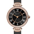 Модель в стиле fashion имеет привлекательный циферблат с узорчатой серединкой. БезельБезельВнешний ободок, закрепляющий стекло. В спортивных часах так называется поворотное кольцо с делениями на циферблате, выполняет роль таймера – замеряет отрезки времени на шкале. Неподвижный безель – элемент декора. Однонаправленно вращающийся безель на дайверских часах позволяет фиксировать моменты погружения и выныривания на поверхность. декорирован цирконами, добавляющими настроение праздника. Кварцевый механизм. Браслет необычного плетения. Минеральное стекло. Розовое и чёрное PVD-покрытиеPVDУльтратонкое покрытие наносится в технике вакуумного напыления, сочетает в себе нитрид титана особой прочности со слоем золота или оксида хрома. Несёт в себе декоративную или защитную функцию.. Водонепроницаемость 30 метров.
