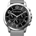 Аксессуар в чёрно-серебристой расцветке выигрышно смотрится с деловым костюмом, повседневной одеждой. Круглые счётчики показывают время в 24-х часовом формате, дату и день недели. Браслет миланского плетения стильно смотрится на запястье. Кварцевый механизм обеспечивает высокую точность хода. Корпус из хирургической стали 316L устойчив к деформации и повреждениям.