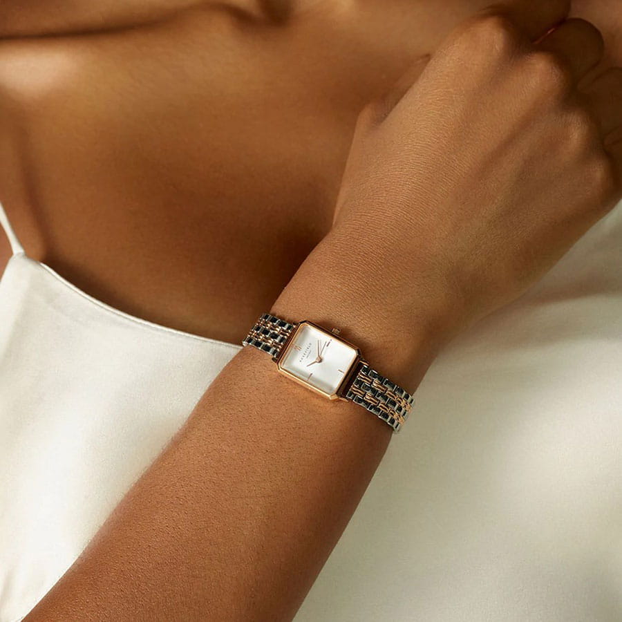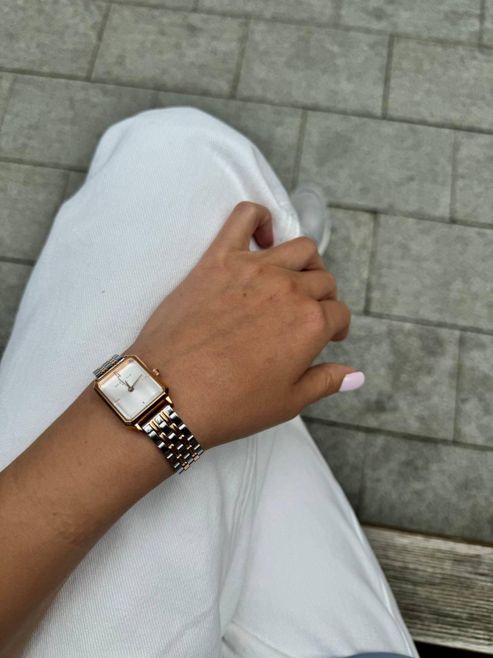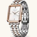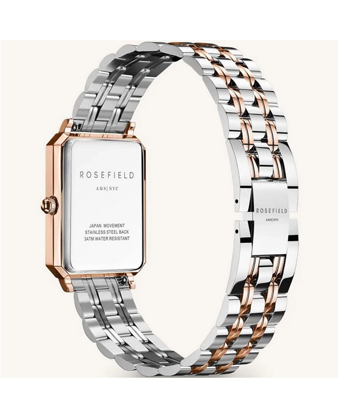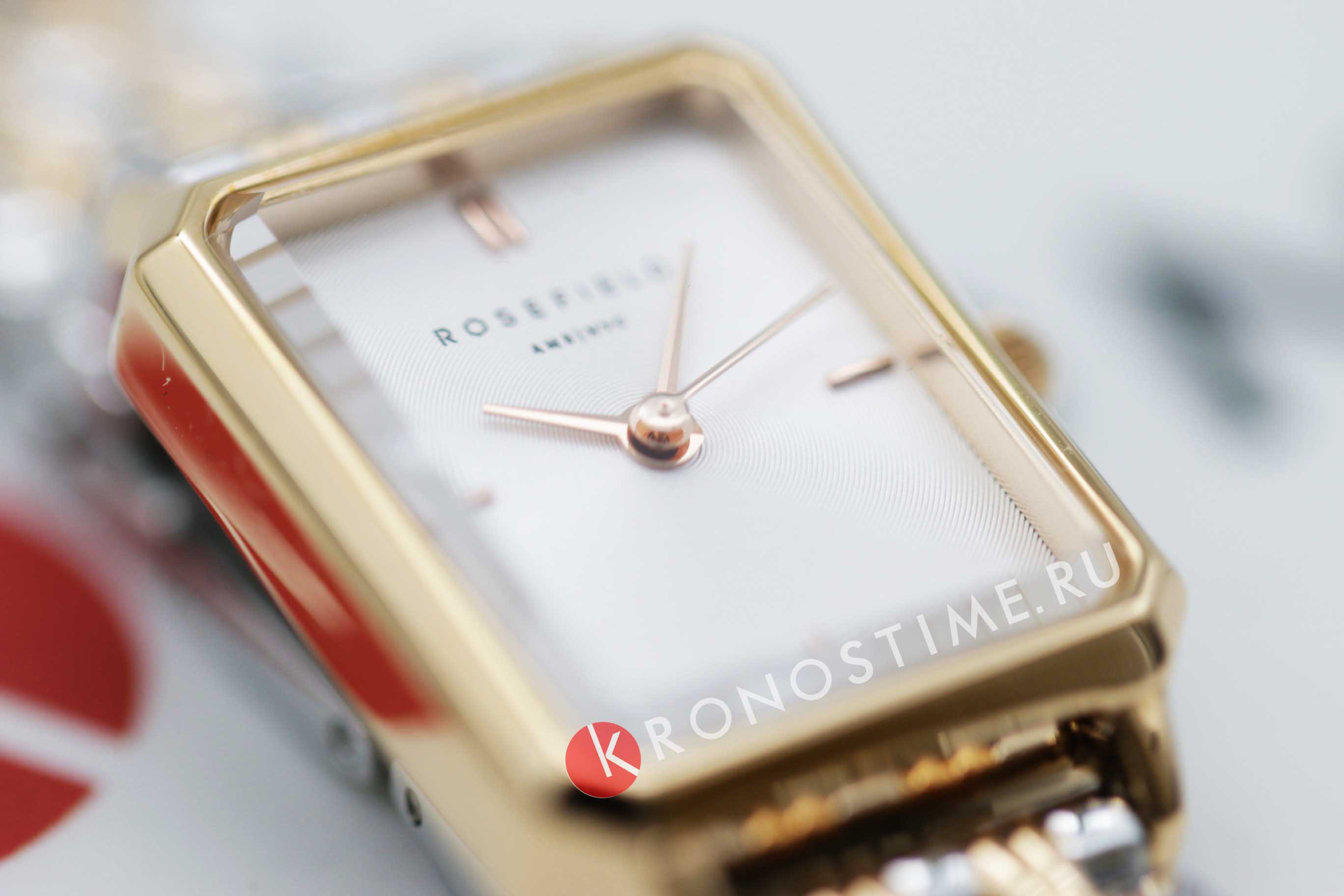 Женские кварцевые часы. Центральные часовая, минутная и секундная стрелки. Серебристый циферблат. Восьмиугольный корпус выполнен из металла с IP покрытием цвета розового золота. Размер корпуса составляет 19,5 х 24 мм, толщина 7 мм. Стальной браслет с частичным покрытием, браслетная застежка. Прочное минеральное стекло устойчивое к мелким механическим повреждениям. Водостойкость WR 30 (брызги).