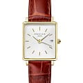 Часы Rosefield Boxy XS Brown Leather (модель QWBLG-Q55) — это элегантный женский аксессуар, сочетающий классический дизайн и современные тенденции. Корпус квадратной формы размером 22 x 24 мм выполнен из латуни с PVD-покрытиемPVDУльтратонкое покрытие наносится в технике вакуумного напыления, сочетает в себе нитрид титана особой прочности со слоем золота или оксида хрома. Несёт в себе декоративную или защитную функцию., что придаёт часам утончённый и изысканный вид. Белый циферблат с золотистыми часовыми метками и стрелками обеспечивает отличную читаемость и дополнен функцией отображения даты в положении "3 часа". Циферблат защищён минеральным стекломМинеральное стеклоМинеральное стекло представляет собой искусственно выращенный минерал кварца. Такое стекло отличается особой устойчивостью к повреждениям и царапинам. Уступает по некоторым качествам сапфировому стеклу., устойчивым к царапинам.