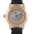 Циферблат выполнен в универсальном дизайне, который подходит как для классического строгого образа, так и для повседневного casual. Стрелки и временные отметки имеют люминесцентное покрытиеЛюминесцентное покрытиеПозволяет считывать показания времени в темноте. Производители наносят на стрелки, часовые индексы, безель или поверхность циферблата светонакопительный состав, дающий холодное свечение., что позволяет видеть время даже в темноте. Прозрачная задняя крышка корпуса выполнена из минерального стекла, которое открывает вид на работающий механизм, добавляя часам дополнительную эстетическую ценность.