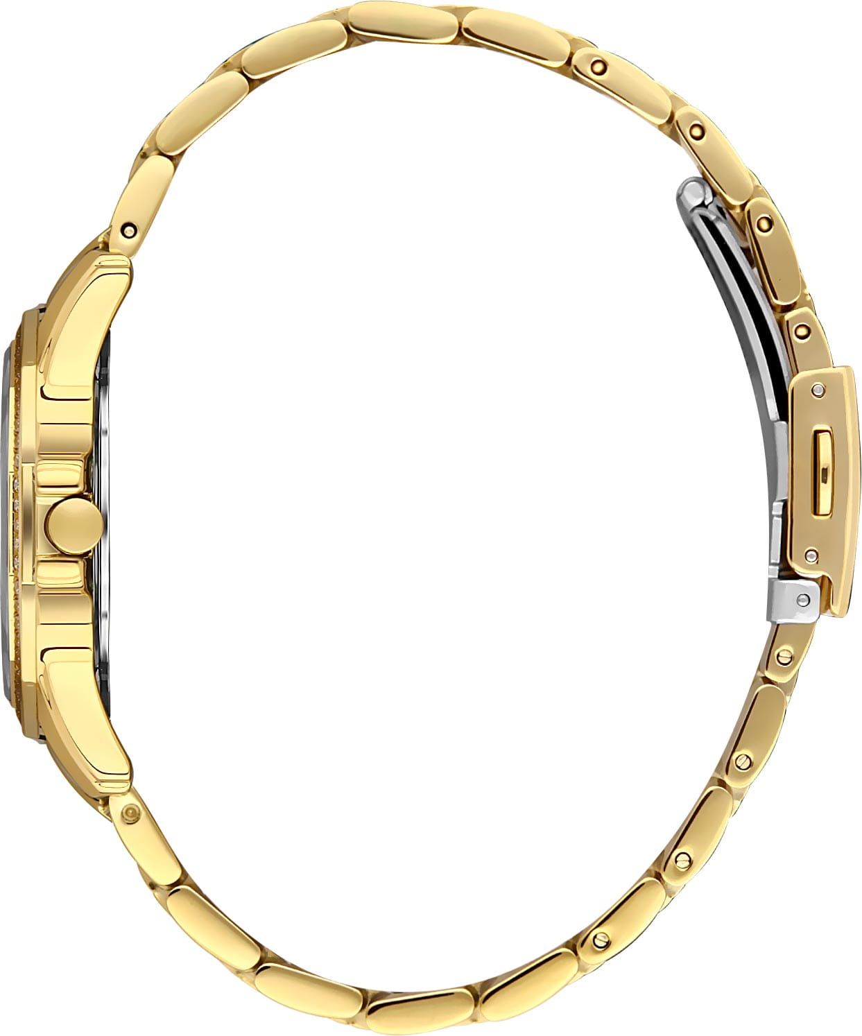 Женские кварцевые часы Santa Barbara Polo & Racquet Club — это изысканный и привлекательный аксессуар. Корпус диаметром 34 мм выполнен из латуни с IP-покрытиемIP-покрытиеМетод ионного напыления. Демонстрирует повышенную устойчивость к истиранию, окислению и химическим веществам. Под воздействием высокого давления и температуры около 1500°C молекулы металла надёжно соединяются с частицами корпуса часов.. БезельБезельВнешний ободок, закрепляющий стекло. В спортивных часах так называется поворотное кольцо с делениями на циферблате, выполняет роль таймера – замеряет отрезки времени на шкале. Неподвижный безель – элемент декора. Однонаправленно вращающийся безель на дайверских часах позволяет фиксировать моменты погружения и выныривания на поверхность. 12-гранной формы украшен кристаллами. Циферблат серебристого цвета выполнен по технологии Sunray («солнечные лучи») и оформлен штрихами и стрелками. Стрелки с люминесцентным покрытиемЛюминесцентное покрытиеПозволяет считывать показания времени в темноте. Производители наносят на стрелки, часовые индексы, безель или поверхность циферблата светонакопительный состав, дающий холодное свечение., обеспечивающим хорошую читаемость в темноте. Циферблат защищён минеральным стекломМинеральное стеклоМинеральное стекло представляет собой искусственно выращенный минерал кварца. Такое стекло отличается особой устойчивостью к повреждениям и царапинам. Уступает по некоторым качествам сапфировому стеклу.. Механизм — кварцевый калибр Miyota 2035. Заводная головка с защитой повышает надёжность. Часы оснащены стальным браслетом с IP-покрытиемIP-покрытиеМетод ионного напыления. Демонстрирует повышенную устойчивость к истиранию, окислению и химическим веществам. Под воздействием высокого давления и температуры около 1500°C молекулы металла надёжно соединяются с частицами корпуса часов. на раскладной застёжкеРаскладная застёжкаТакой тип застёжки используется только на браслетах из металла. Она никогда не раскрывается полностью, происходит разделение на 2 и более частей. Раскладывающая застёжка снизит вероятность потери часов к минимуму.. Водонепроницаемость 50 м позволяет использовать часы в повседневных условиях. Идеальный выбор для тех, кто ценит американское качество и женственный дизайн.