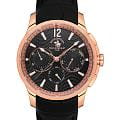 Мужские кварцевые часы Santa Barbara Polo & Racquet Club — это идеальный выбор для тех, кто ценит практичность и стиль. Корпус диаметром 43 мм выполнен из нержавеющей стали 316L с IP-покрытиемIP-покрытиеМетод ионного напыления. Демонстрирует повышенную устойчивость к истиранию, окислению и химическим веществам. Под воздействием высокого давления и температуры около 1500°C молекулы металла надёжно соединяются с частицами корпуса часов. розового золота и полированной отделкой. Циферблат чёрного цвета украшен узором и фирменным логотипом, дополнен накладными метками в виде штрихов и арабской цифрой 12. Указатели дня недели и даты вынесены на отдельные субциферблаты, также присутствует индикация 24-часового формата времени. Стрелки и метки с люминесцентным покрытиемЛюминесцентное покрытиеПозволяет считывать показания времени в темноте. Производители наносят на стрелки, часовые индексы, безель или поверхность циферблата светонакопительный состав, дающий холодное свечение., обеспечивающим хорошую читаемость в темноте. Циферблат защищён минеральным стекломМинеральное стеклоМинеральное стекло представляет собой искусственно выращенный минерал кварца. Такое стекло отличается особой устойчивостью к повреждениям и царапинам. Уступает по некоторым качествам сапфировому стеклу.. Часы оснащены кожаным ремешком на застёжке «бабочка» с кнопкамиЗастёжка "бабочка"Такой вид застёжки дополняется предохранителями, помогающими избежать случайного раскрытия браслета. Обладают изящным исполнением. . Водонепроницаемость 50 м позволяет использовать часы в повседневных условиях. Идеальный выбор для тех, кто ценит классический дизайн, точность и надёжность..