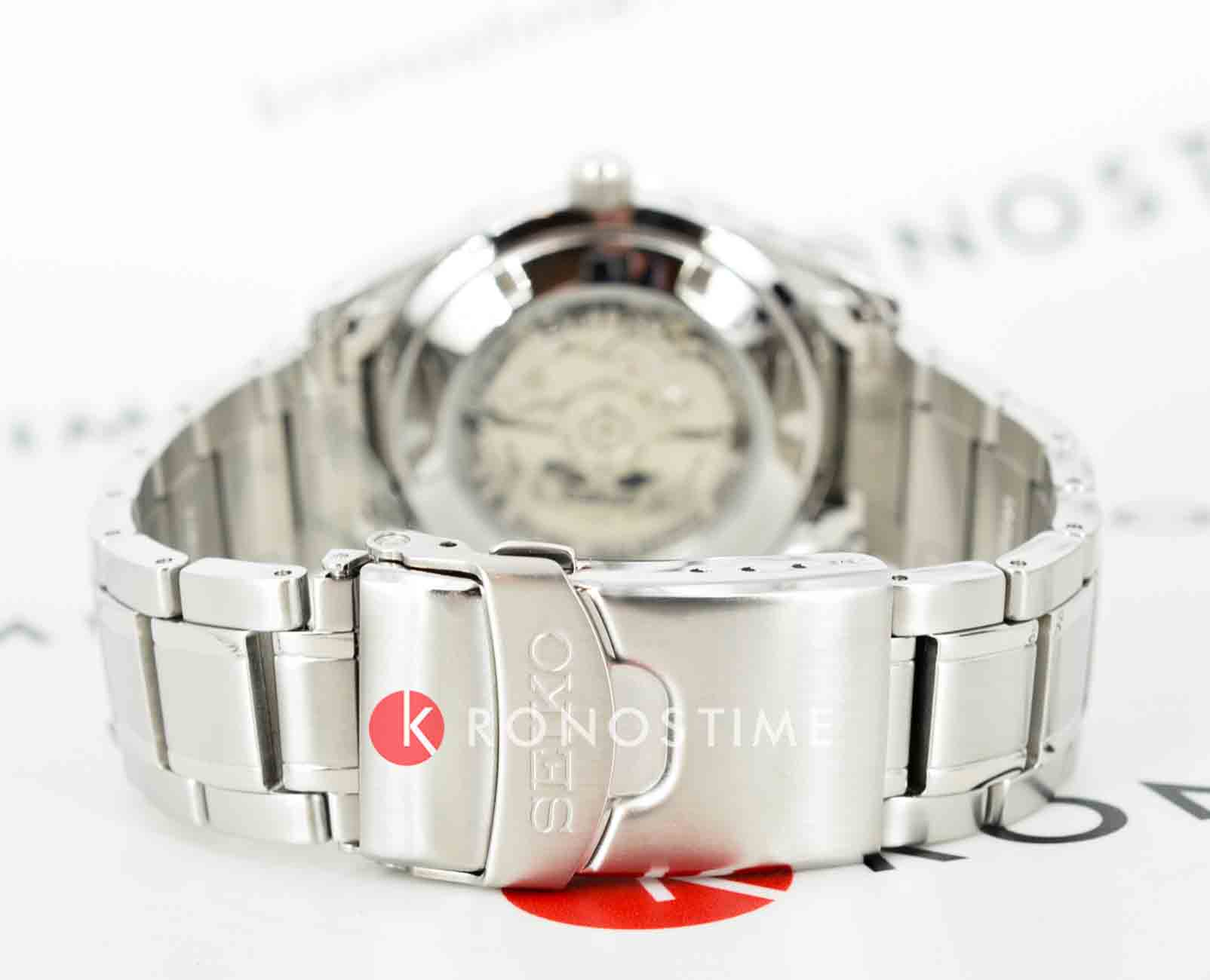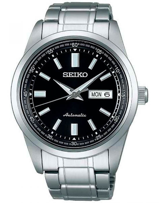 Модель Seiko SARV003 — это классические автоматические часы с глубоким чёрным циферблатом и строгим стилем исполнения. Корпус диаметром 42 мм изготовлен из нержавеющей стали с комбинированной полировкой, задняя крышка прозрачная, завинчивающаяся. Водозащита до 100 метров делает модель подходящей для повседневного ношения. Фиксированный стальной безельБезельВнешний ободок, закрепляющий стекло. В спортивных часах так называется поворотное кольцо с делениями на циферблате, выполняет роль таймера – замеряет отрезки времени на шкале. Неподвижный безель – элемент декора. Однонаправленно вращающийся безель на дайверских часах позволяет фиксировать моменты погружения и выныривания на поверхность. подчеркивает сдержанный внешний вид. Чёрный циферблат оформлен серебристыми стрелками и метками, которые покрыты люминесцентным покрытиемЛюминесцентное покрытиеПозволяет считывать показания времени в темноте. Производители наносят на стрелки, часовые индексы, безель или поверхность циферблата светонакопительный состав, дающий холодное свечение. LumiBrite для удобной читаемости в тёмное время суток. На отметке 3 часа — двойное окошко даты и дня недели (на английском и японском языках). Циферблат защищён прочным минеральным стекломМинеральное стеклоМинеральное стекло представляет собой искусственно выращенный минерал кварца. Такое стекло отличается особой устойчивостью к повреждениям и царапинам. Уступает по некоторым качествам сапфировому стеклу. Hardlex, устойчивым к царапинам. Внутри установлен автоматический механизм Seiko 4R36 с функцией ручного подзавода, остановкой секундной стрелки и запасом хода до 41 часа. Браслет из нержавеющей стали оснащён надёжной раскладной застёжкойРаскладная застёжкаТакой тип застёжки используется только на браслетах из металла. Она никогда не раскрывается полностью, происходит разделение на 2 и более частей. Раскладывающая застёжка снизит вероятность потери часов к минимуму. с кнопками, обеспечивающей комфортную посадку на запястье. Seiko SARV003 — это надёжный повседневный аксессуар, сочетающий строгость, практичность и японское качество в узнаваемом классическом стиле.