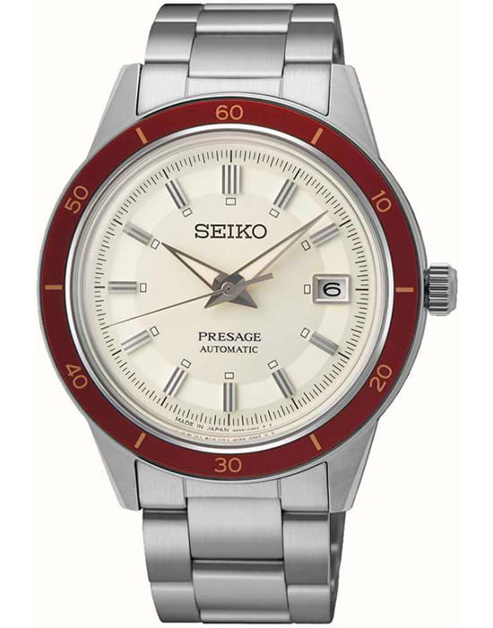 Мужские наручные часы Seiko SRPH93J1 из коллекции Presage Style 60s сочетают в себе классический дизайн и надежность современных технологий. Модель обладает круглым корпусом диаметром 40,8 мм, изготовленным из нержавеющей стали, что обеспечивает высокую устойчивость к внешним воздействиям . Толщина корпуса составляет 12 мм, а для защиты используется минеральное стеклоМинеральное стеклоМинеральное стекло представляет собой искусственно выращенный минерал кварца. Такое стекло отличается особой устойчивостью к повреждениям и царапинам. Уступает по некоторым качествам сапфировому стеклу. Hardlex Crystal, обеспечивающее прочную защиту от царапин . БезельБезельВнешний ободок, закрепляющий стекло. В спортивных часах так называется поворотное кольцо с делениями на циферблате, выполняет роль таймера – замеряет отрезки времени на шкале. Неподвижный безель – элемент декора. Однонаправленно вращающийся безель на дайверских часах позволяет фиксировать моменты погружения и выныривания на поверхность. с PVD-покрытиемPVDУльтратонкое покрытие наносится в технике вакуумного напыления, сочетает в себе нитрид титана особой прочности со слоем золота или оксида хрома. Несёт в себе декоративную или защитную функцию.. Браслет также выполнен из нержавеющей стали с раскладной застежкойРаскладная застёжкаТакой тип застёжки используется только на браслетах из металла. Она никогда не раскрывается полностью, происходит разделение на 2 и более частей. Раскладывающая застёжка снизит вероятность потери часов к минимуму., гарантирующей комфортное ношение . Циферблат бежевого цвета украшен текстурой, которая подчеркивает элегантный стиль модели. Часы оснащены функцией отображения даты на позиции «3 часа» . Модель работает на автоматическом механизме с калибром 4R35, который включает 23 камня и обладает запасом хода до 41 часа . Водонепроницаемость составляет WR 50, что позволяет защитить корпус от случайных брызг и кратковременного контакта с водой . Вдохновленные культурой 1960-х годов, эти часы демонстрируют уникальный стиль и внимание к деталям, сохраняя при этом практичность для повседневного использования.