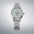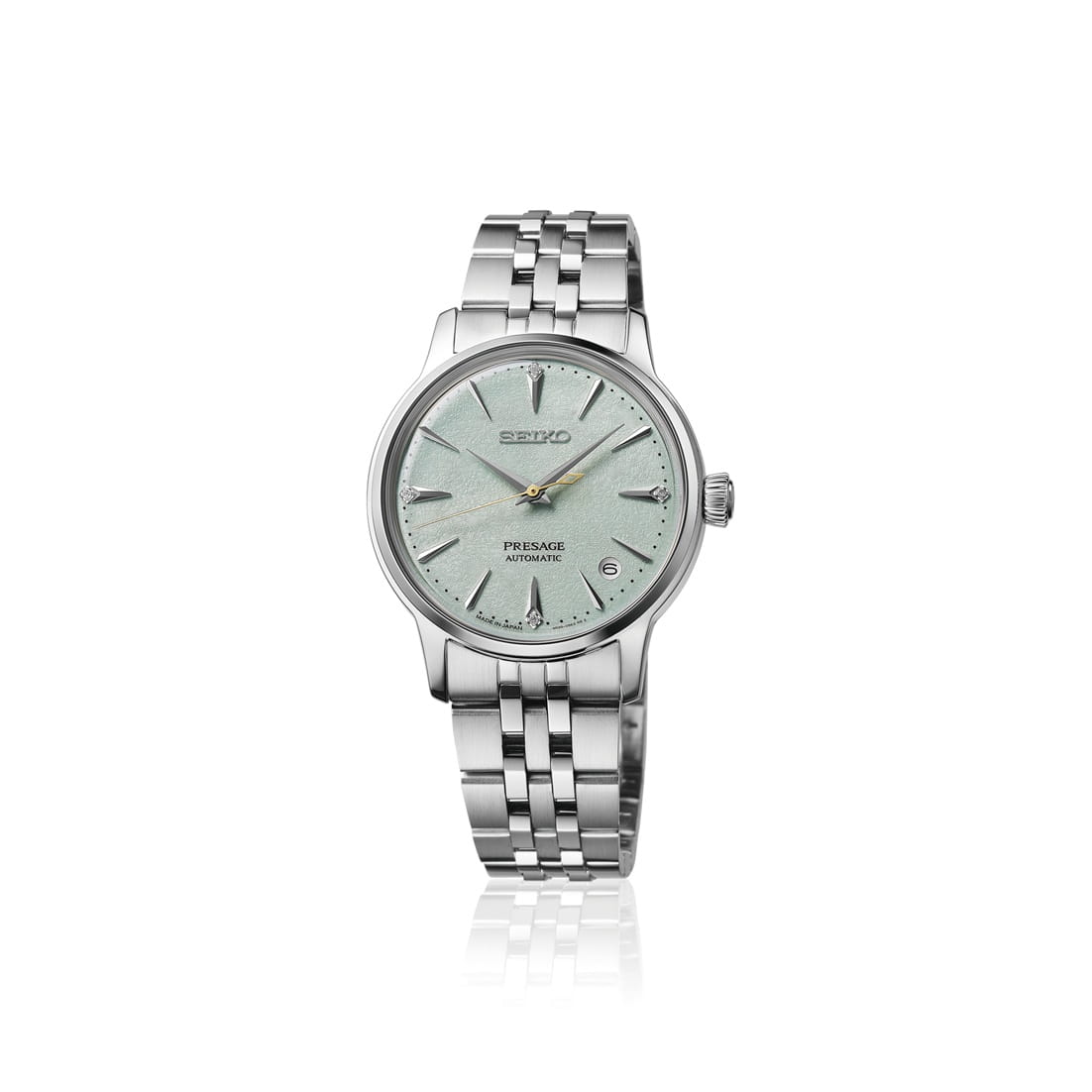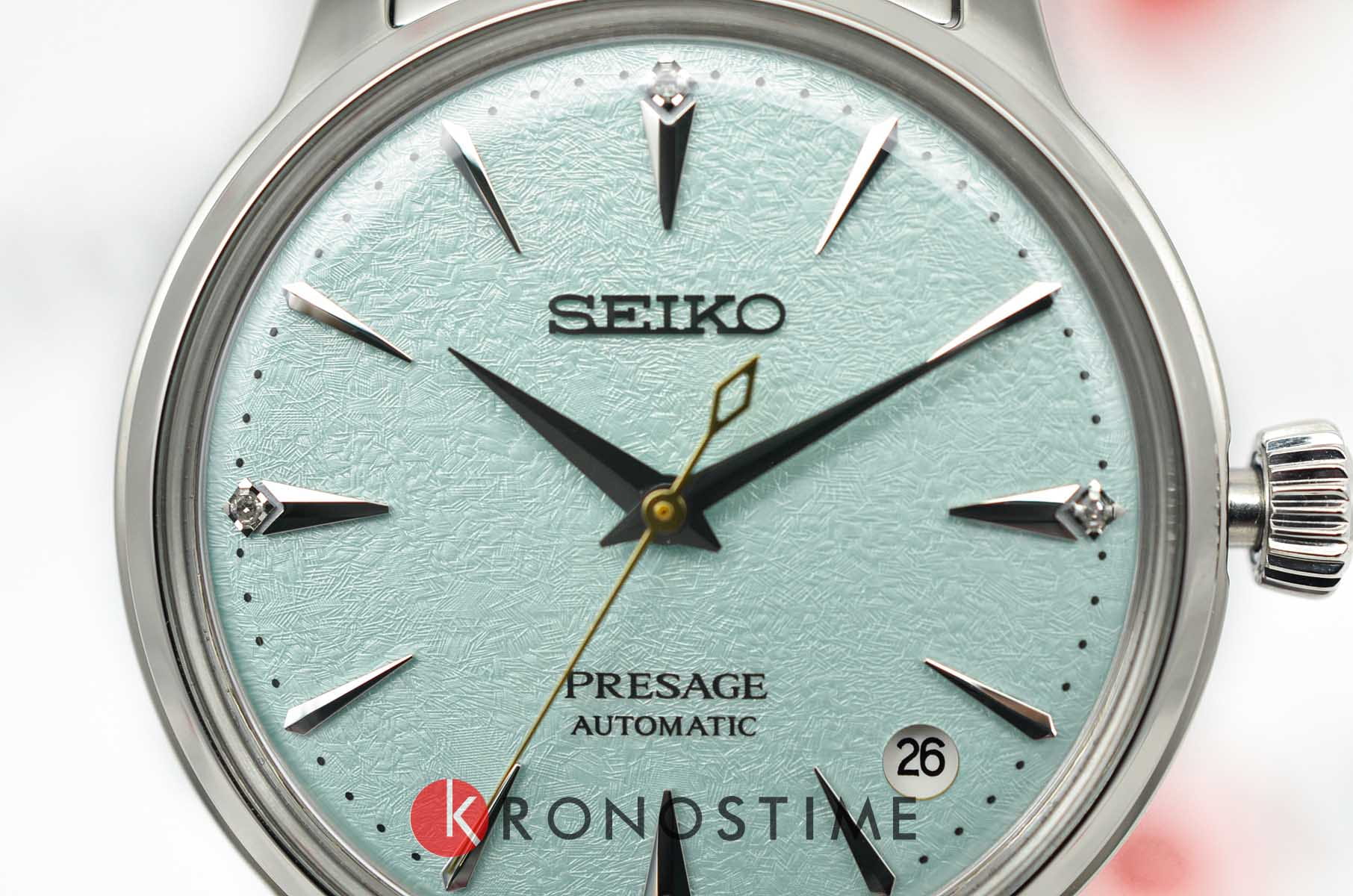 Модель Seiko Presage Cocktail Time SRPL63 вдохновлена свежестью японского коктейля Frozen Sky Diving. Часы отличаются циферблатом с четырьмя метками из драгоценных камней, что придаёт им особую роскошь и изысканность. Корпус диаметром 40 мм изготовлен из нержавеющей стали, а стекло выполнено по технологии Hardlex — это минеральное стеклоМинеральное стеклоМинеральное стекло представляет собой искусственно выращенный минерал кварца. Такое стекло отличается особой устойчивостью к повреждениям и царапинам. Уступает по некоторым качествам сапфировому стеклу. повышенной прочности, устойчивое к мелким механическим повреждениям. Механизм — автоматический калибр 4R35, обеспечивающий надёжную работу часов и запас хода до 41 часа. Функция отображения даты добавляет модели практичности. Часы водонепроницаемы до 5 атмосфер, что соответствует защите от случайных капель дождя. Браслет и застёжка выполнены из стали, оснащены раскладной застёжкойРаскладная застёжкаТакой тип застёжки используется только на браслетах из металла. Она никогда не раскрывается полностью, происходит разделение на 2 и более частей. Раскладывающая застёжка снизит вероятность потери часов к минимуму., обеспечивающей удобство ношения. Дизайн часов дополнен классическим сочетанием материалов и цветов, что делает их универсальным аксессуаром для повседневного и торжественного образа. Модель 2025 года имеет современный, лаконичный внешний вид, сохраняя при этом традиционные элементы часового мастерства Seiko.