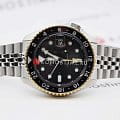 Часы Seiko 5 Sports SSK021K1 сочетают в себе элегантный дизайн и функциональность, характерные для японского часового мастерства. Корпус диаметром 42,5 мм выполнен из нержавеющей стали с двухцветным PVD-покрытиемPVDУльтратонкое покрытие наносится в технике вакуумного напыления, сочетает в себе нитрид титана особой прочности со слоем золота или оксида хрома. Несёт в себе декоративную или защитную функцию.: сочетание серебристого и золотистого тонов придаёт часам утончённый вид. Чёрный циферблат защищён минеральным стекломМинеральное стеклоМинеральное стекло представляет собой искусственно выращенный минерал кварца. Такое стекло отличается особой устойчивостью к повреждениям и царапинам. Уступает по некоторым качествам сапфировому стеклу. с увеличительной линзой над окошком даты.  Внутри часов установлен механический калибр 4R36 с автоподзаводом, обеспечивающий точность хода и запас хода до 41 часа. Дополнительная 24-часовая стрелка позволяет отслеживать время в другом часовом поясе, что особенно удобно для путешественников.  Водозащита 100 метров (10 бар) позволяет использовать часы для плавания и других водных видов спорта. Стальной браслет с двухцветным PVD-покрытиемPVDУльтратонкое покрытие наносится в технике вакуумного напыления, сочетает в себе нитрид титана особой прочности со слоем золота или оксида хрома. Несёт в себе декоративную или защитную функцию. и раскладной застёжкойРаскладная застёжкаТакой тип застёжки используется только на браслетах из металла. Она никогда не раскрывается полностью, происходит разделение на 2 и более частей. Раскладывающая застёжка снизит вероятность потери часов к минимуму. обеспечивает комфортное ношение и надёжную фиксацию на запястье.  Эти часы идеально подойдут для тех, кто ценит сочетание стиля и функциональности в одном аксессуаре.