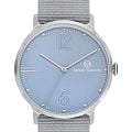 Модель оснащена тканевым ремешком, который обеспечивает комфортную посадку и подчёркивает повседневный характер часов. За точность отвечает надёжный кварцевый механизм, а циферблат защищён минеральным стекломМинеральное стеклоМинеральное стекло представляет собой искусственно выращенный минерал кварца. Такое стекло отличается особой устойчивостью к повреждениям и царапинам. Уступает по некоторым качествам сапфировому стеклу..