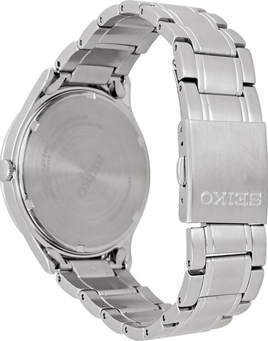 Наручные часы в строгом стиле выполнены в серебристом цвете, универсальный оттенок в создаёт гармонию. Контрастные арабские цифры идеально читаются на светлом фоне. Высокая точность хода ±15 секунд в месяц обеспечивается японским кварцевым механизмом Seiko 7N42. Циферблат защищает сапфировое стекло. Корпус и браслет сделаны из нержавеющей стали 316L, отличающейся прочностью и долговечностью. Задняя крышка завинчивается, дополнительно способствуя водостойкости до 100 метров. Календарь – практичная функция позволит всегда быть в курсе событий. Диаметр корпуса: 40 мм.