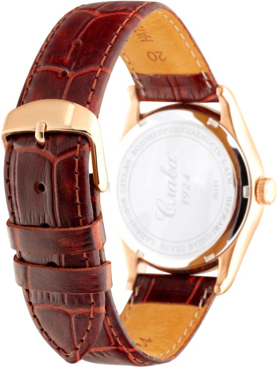 Российские механические часы с автоподзаводом Слава Премьер 1493277/300-8215. Корпус часов выполнен из стали с IP-покрытиемIP-покрытиеМетод ионного напыления. Демонстрирует повышенную устойчивость к истиранию, окислению и химическим веществам. Под воздействием высокого давления и температуры около 1500°C молекулы металла надёжно соединяются с частицами корпуса часов., что придает им долговечность и устойчивость к внешним воздействиям. Сапфировое стеклоСапфировое стеклоПрочный и надёжный материал из кристалла сапфира синтетического происхождения, характеризующийся особой твёрдостью и устойчивостью к царапинам и повреждениям.. Класс водозащиты часов составляет 50 метров, позволит защитить корпус от случайных брызг или капель дождя. Кожаный браслет с стандартной застежкой обеспечивает комфортное ношение и надежную фиксацию на запястье. Эти часы идеально подойдут для повседневного использования, сочетая в себе стиль, надежность и функциональность. Окошко даты находится в положении 3 часа.