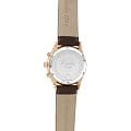Российские механические наручные часы-хронографХронографФункция позволяет измерять отрезки времени с особой точностью: часы, минуты, секунды. Верным признаком хронографа является наличие на циферблате 3 дополнительных окошек-счётчиков. с секундомеромСекундомерСекундоме́р — прибор, способный измерять интервалы времени с точностью до долей секунды. Слава Сенат 1889258/300-4617, которые станут идеальным аксессуаром для повседневного ношения. Эти часы сочетают в себе элегантность и практичность, предлагая безупречный стиль и надежность. Оснащенные механизмом Peacock 4617 с автоподзаводом, они обеспечивают точность и долговечность. Стальной корпус с IP-покрытиемIP-покрытиеМетод ионного напыления. Демонстрирует повышенную устойчивость к истиранию, окислению и химическим веществам. Под воздействием высокого давления и температуры около 1500°C молекулы металла надёжно соединяются с частицами корпуса часов. золотистого цвета и сапфировым стекломСапфировое стеклоПрочный и надёжный материал из кристалла сапфира синтетического происхождения, характеризующийся особой твёрдостью и устойчивостью к царапинам и повреждениям. защищает черный циферблат с римскими цифрами. Часы также имеют календарь с окошком даты на 6 часах и водозащиту до 50WR, что делает их надежными в различных условиях. Стрелки часов с люминесцентным покрытиемЛюминесцентное покрытиеПозволяет считывать показания времени в темноте. Производители наносят на стрелки, часовые индексы, безель или поверхность циферблата светонакопительный состав, дающий холодное свечение., что облегчает чтение времени даже в условиях слабого освещения. Текстурированный кожаный коричневый ремешок с классической застежкой завершает этот изысканный образ.