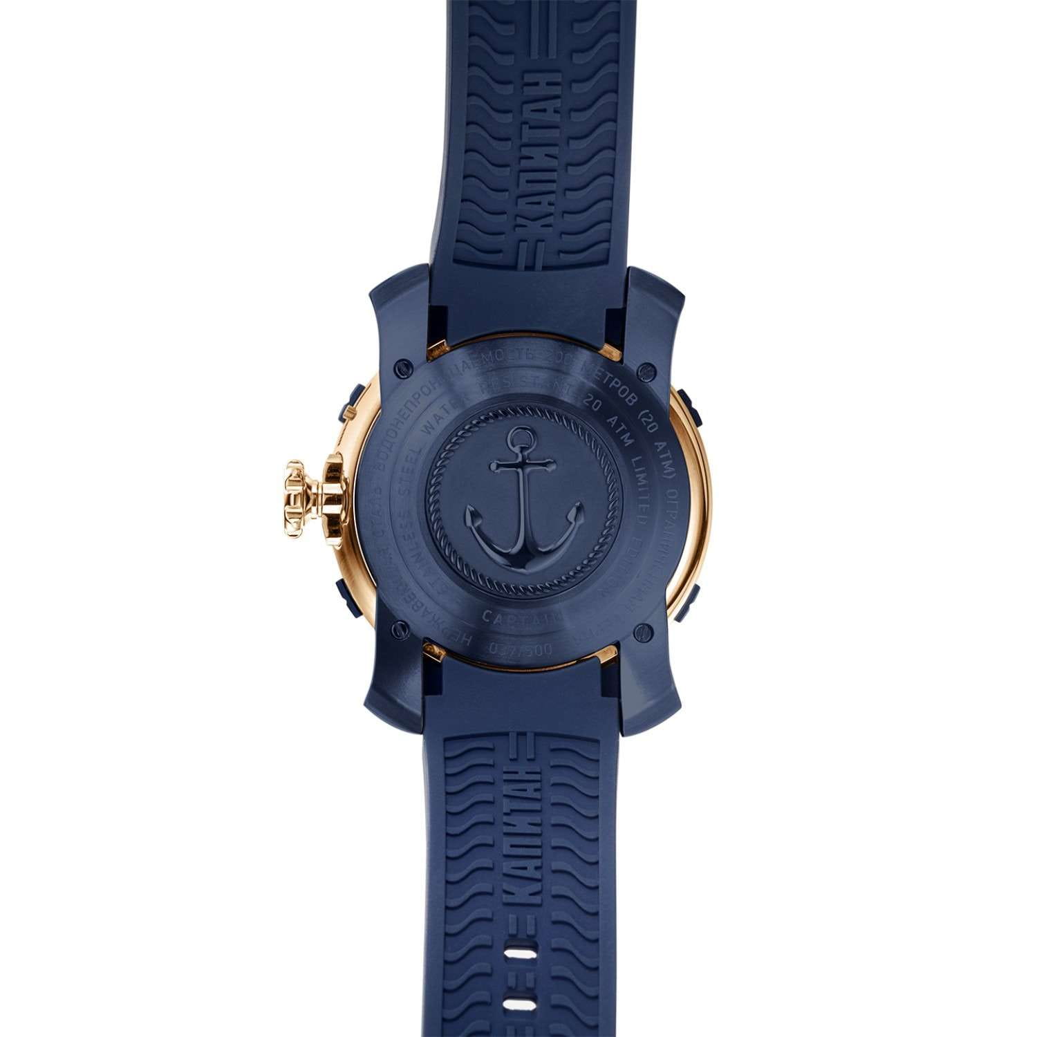 Российские механические наручные часы Слава Капитан 2473245/800-2427 — идеальный выбор для мужчин, ценящих стиль и надежность. Эта уникальная модель выпущена ограниченной серией в 500 экземпляров и сочетает в себе модный дизайн и высокое качество исполнения. Корпус часов выполнен из прочной стали с синим IP-покрытиемIP-покрытиеМетод ионного напыления. Демонстрирует повышенную устойчивость к истиранию, окислению и химическим веществам. Под воздействием высокого давления и температуры около 1500°C молекулы металла надёжно соединяются с частицами корпуса часов. и имеет диаметр 44 мм и толщину 16 мм, что придает им солидный и мужественный вид. БезельБезельВнешний ободок, закрепляющий стекло. В спортивных часах так называется поворотное кольцо с делениями на циферблате, выполняет роль таймера – замеряет отрезки времени на шкале. Неподвижный безель – элемент декора. Однонаправленно вращающийся безель на дайверских часах позволяет фиксировать моменты погружения и выныривания на поверхность. часов с IP-покрытиемIP-покрытиеМетод ионного напыления. Демонстрирует повышенную устойчивость к истиранию, окислению и химическим веществам. Под воздействием высокого давления и температуры около 1500°C молекулы металла надёжно соединяются с частицами корпуса часов. покрытием сине-золотого цвета, выполненный в форме штурвала под стать названию коллекции "Капитан", придаёт часам неповторимый морской характер и стиль. Водозащита до 20 ATM позволяет использовать часы даже при погружении в воду, что делает их отличным выбором для активных мужчин. Белый циферблат с метками и сапфировое стеклоСапфировое стеклоПрочный и надёжный материал из кристалла сапфира синтетического происхождения, характеризующийся особой твёрдостью и устойчивостью к царапинам и повреждениям. обеспечивают долговечность и устойчивость к царапинам. Механический механизм "Слава 2427" с автоподзаводом и возможностью ручного подзавода гарантирует точность и надежность, а двойной календарь добавляет функциональности. На 3 часах расположено окошко с указателем даты и дня недели. Часы комплектуются прочным силиконовым ремешком со стандартной застежкой, обеспечивающим комфорт и надежную фиксацию на запястье. Задняя крышка крепится на 4-х винтах и украшена объемным изображением якоря. Индивидуальный серийный номер. Упакованы в стильную подарочную коробку из экокожи, они станут отличным подарком для любого особого случая. С часами Слава из коллекции Капитан вы подчеркнете свой статус и вкус, оставаясь верным российским традициям качества и стиля.