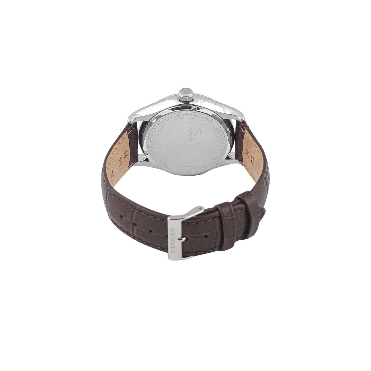 Российские наручные часы Слава Сенат 2490540/300-2115 станут отличным дополнением к вашему образу и идеальным выбором для тех, кто ценит стиль, комфорт и надежность. Эти часы оснащены японским кварцевым механизмом Miyota 2115, что гарантирует их точность и долговечность. Корпус часов диаметром 38 мм и толщиной 11 мм выполнен из прочной стали, а коричневый циферблат с изящными метками защищен сапфировым стекломСапфировое стеклоПрочный и надёжный материал из кристалла сапфира синтетического происхождения, характеризующийся особой твёрдостью и устойчивостью к царапинам и повреждениям., устойчивым к царапинам. Окошко календаря, расположенное в положении 6 часов, добавляет функциональности и удобства в повседневном использовании. Стрелки с люминесцентным покрытиемЛюминесцентное покрытиеПозволяет считывать показания времени в темноте. Производители наносят на стрелки, часовые индексы, безель или поверхность циферблата светонакопительный состав, дающий холодное свечение., что облегчает чтение времени даже в условиях слабого освещения. Эти часы обладают водозащитой 50WR, что позволяет не переживать за их сохранность в условиях повышенной влажности. Завершает образ кожаный ремешок с классической застежкой, обеспечивающий комфортную посадку на запястье.