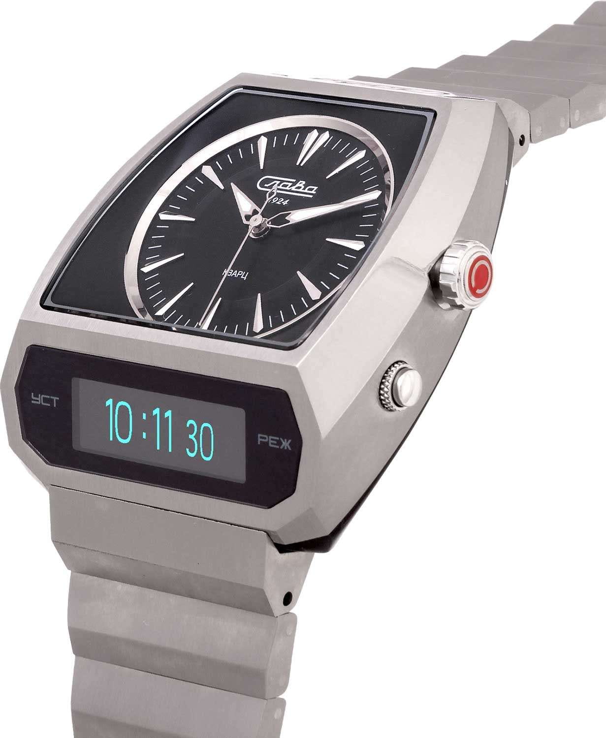 Часы Слава 9002737/100-GL32 представляют собой уникальное сочетание ретро-стиля и современных технологий, которые обязательно привлекут внимание коллекционеров и ценителей эксклюзивных аксессуаров. Выпущенные в России, эти лимитированные часы вдохновлены дизайном моделей для водителей, популярных в 1970-х годах. В основе их создания лежит концепция, позволяющая легко считывать время, не отрывая рук от руля, что делает их особенно удобными для автолюбителей. Корпус и браслет изготовлены из легкого и прочного титана, придающего часам элегантный и современный вид. Часы оснащены двумя механизмами, включая кварцевый механизм калибра Miyota GL32 и специально разработанный электронный механизм, который позволяет одновременно отображать время в двух часовых поясах. Черный циферблат с штриховыми метками надежно защищен сапфировым стекломСапфировое стеклоПрочный и надёжный материал из кристалла сапфира синтетического происхождения, характеризующийся особой твёрдостью и устойчивостью к царапинам и повреждениям., устойчивым к царапинам. Стрелки с люминесцентным покрытиемЛюминесцентное покрытиеПозволяет считывать показания времени в темноте. Производители наносят на стрелки, часовые индексы, безель или поверхность циферблата светонакопительный состав, дающий холодное свечение., что облегчает чтение времени даже в условиях слабого освещения. Дополнительные функции включают будильник, секундомер, таймер обратного отсчета и автоматический календарь, который отображает число, день недели, месяц и год. Рифленая заводная головка и задняя крышка, крепящаяся на винтах, подчеркивают внимание к деталям. Индивидуальный номер, выгравированный на боковой стенке, подтверждает эксклюзивность каждой модели. Титановый браслет с застежкой «бабочка»Застёжка "бабочка"Такой вид застёжки дополняется предохранителями, помогающими избежать случайного раскрытия браслета. Обладают изящным исполнением. обеспечивает надежную фиксацию на запястье. Лимитированная серия ограничена 500 экземплярами, что подчеркивает их уникальность. Часы поставляются в подарочной упаковке, что делает их идеальным выбором для подарка или личной коллекции. Часы обладают водозащитой уровня WR 50, что позволяет им выдерживать воздействие воды в повседневных ситуациях.