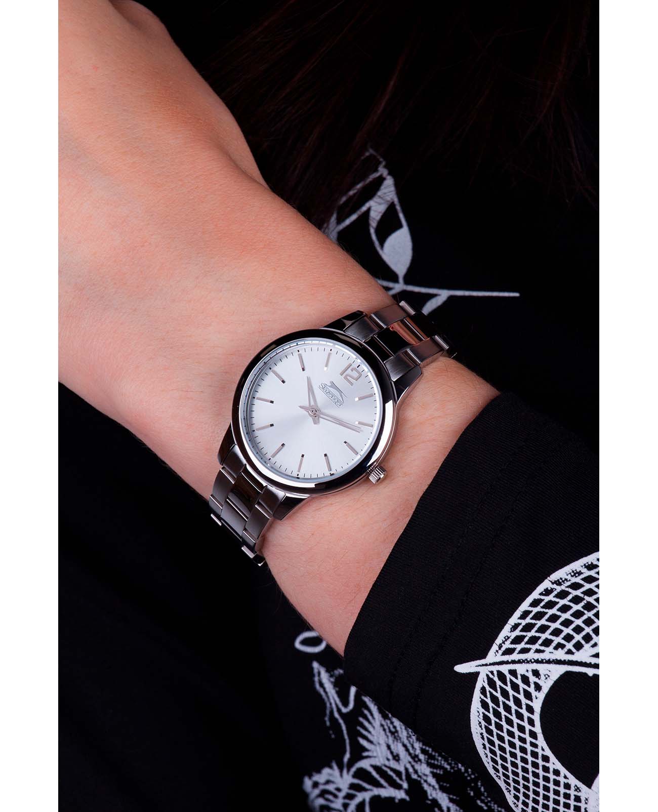 Женские наручные часы Slazenger SL.09.2016.3.01 из коллекции, сочетающей элегантность и практичность в классическом дизайне. Модель обладает круглым корпусом диаметром 32 мм, изготовленным из суперметалла, что обеспечивает высокую устойчивость к внешним воздействиям. Браслет выполнен из того же материала с раскладной застежкойРаскладной замокДанный вариант застежки используется только на часах с металлическим браслетом. Отличительная особенность такого крепления в том, что длина браслета становится универсальной и вы можете самостоятельно отрегулировать нужный вам размер – застежка просто двигается по браслету часов., гарантирующей комфортное ношение и безопасность. Для защиты используется минеральное стеклоМинеральное стеклоМинеральное стекло представляет собой искусственно выращенный минерал кварца. Такое стекло отличается особой устойчивостью к повреждениям и царапинам. Уступает по некоторым качествам сапфировому стеклу., обеспечивающее прочную защиту от царапин. Часы работают на японском кварцевом механизме, что гарантирует точное время без необходимости подзаводки. Водонепроницаемость часов достигает 5 атмосфер (50 метров), что позволяет использовать их для ежедневного использования, включая контакт с водой, но не рекомендуется для плавания или дайвинга.