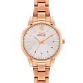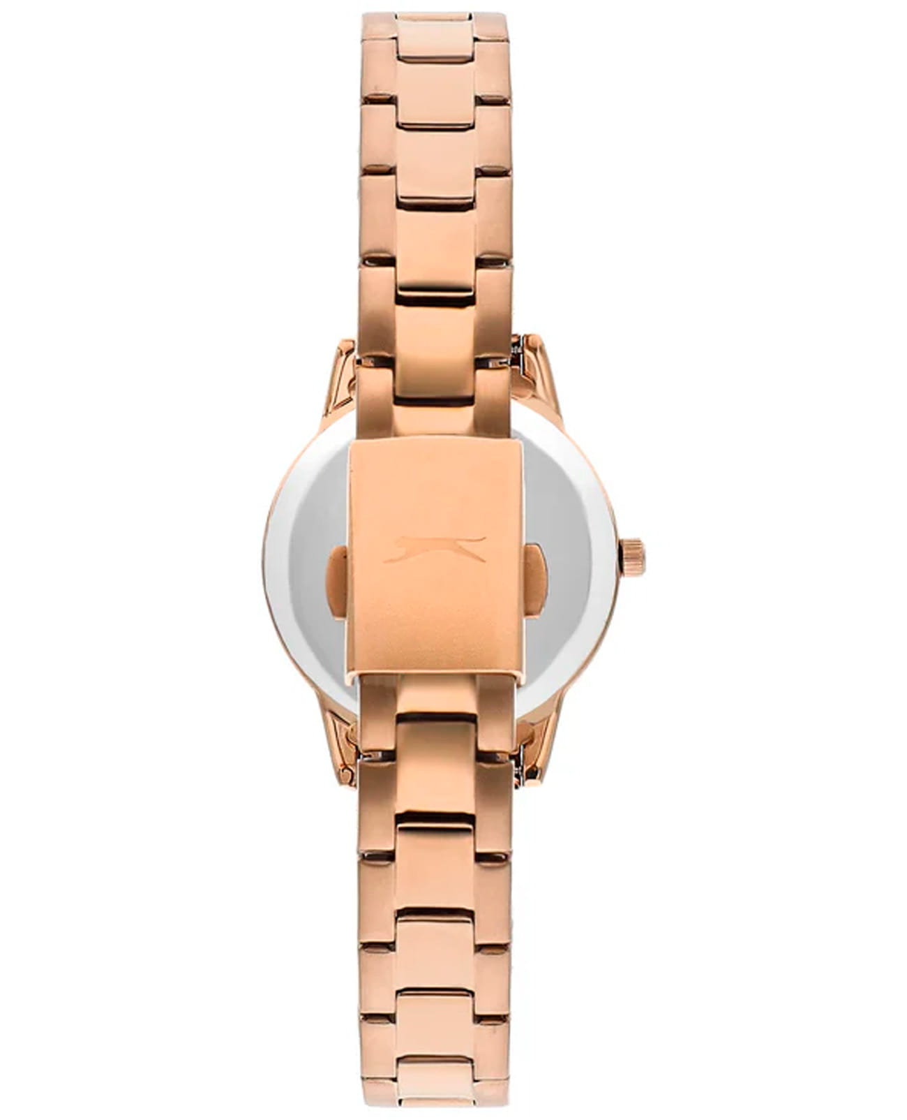 Женские наручные часы Slazenger SL.09.2016.3.04 из новой коллекции бренда сочетают в себе элегантность и современные технологии. Модель имеет круглый корпус диаметром 32 мм, изготовленный из суперметалла с IP-покрытиемIP-покрытиеМетод ионного напыления. Демонстрирует повышенную устойчивость к истиранию, окислению и химическим веществам. Под воздействием высокого давления и температуры около 1500°C молекулы металла надёжно соединяются с частицами корпуса часов. розового оттенка, что обеспечивает высокую устойчивость к внешним воздействиям и привлекательный внешний вид . Браслет выполнен из металла с раскладной застежкойРаскладной замокДанный вариант застежки используется только на часах с металлическим браслетом. Отличительная особенность такого крепления в том, что длина браслета становится универсальной и вы можете самостоятельно отрегулировать нужный вам размер – застежка просто двигается по браслету часов., обеспечивающей комфортное ношение и надежную фиксацию на запястье. Циферблат защищен прочным минеральным стекломМинеральное стеклоМинеральное стекло представляет собой искусственно выращенный минерал кварца. Такое стекло отличается особой устойчивостью к повреждениям и царапинам. Уступает по некоторым качествам сапфировому стеклу., устойчивым к царапинам. Часы оснащены точным кварцевым механизмом японского производства, гарантирующим стабильную работу и точность хода. Модель обладает водонепроницаемостью до 5 атмосфер (WR 50), что позволяет использовать их в условиях легкого контакта с водой, например, при мытье рук или хождении под мелким дождем, однако не рекомендуется для плавания или дайвинга. Вес часов составляет 69 грамм, что делает их удобными для повседневного использования.