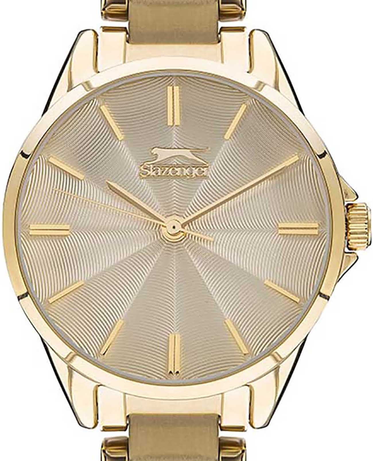 Slazenger SL.09.2023.3.05 – элегантные женские часы, сочетающие стильный дизайн и функциональность. Корпус диаметром 36 мм и толщиной 9 мм выполнен из суперметалла с PVD-покрытиемPVDУльтратонкое покрытие наносится в технике вакуумного напыления, сочетает в себе нитрид титана особой прочности со слоем золота или оксида хрома. Несёт в себе декоративную или защитную функцию., обеспечивающего прочность и долговечность. Циферблат защищён минеральным стекломМинеральное стеклоМинеральное стекло представляет собой искусственно выращенный минерал кварца. Такое стекло отличается особой устойчивостью к повреждениям и царапинам. Уступает по некоторым качествам сапфировому стеклу., устойчивым к царапинам. Часы оснащены точным кварцевым механизмом, обеспечивающим надёжное отображение времени. Браслет из суперметалла с PVD-покрытиемPVDУльтратонкое покрытие наносится в технике вакуумного напыления, сочетает в себе нитрид титана особой прочности со слоем золота или оксида хрома. Несёт в себе декоративную или защитную функцию. шириной 16 мм оснащён раскладной застёжкойРаскладная застёжкаТакой тип застёжки используется только на браслетах из металла. Она никогда не раскрывается полностью, происходит разделение на 2 и более частей. Раскладывающая застёжка снизит вероятность потери часов к минимуму., обеспечивающей комфортное ношение и надёжную фиксацию на запястье. Водозащита до 30 метров (3 ATM) защищает часы от случайных брызг и дождя, делая их подходящими для повседневного использования.