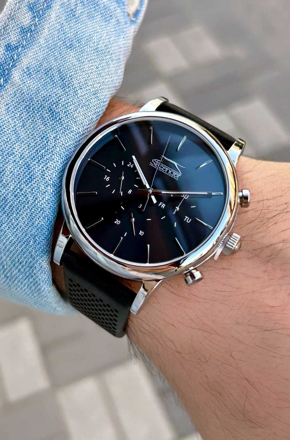 Slazenger SL.09.2030.2.01 – стильные мужские часы, сочетающие современный дизайн и функциональность. Корпус, выполненный из суперметалла, обеспечивает прочность и долговечность, а циферблат придаёт модели элегантный вид; он защищён минеральным стекломМинеральное стеклоМинеральное стекло представляет собой искусственно выращенный минерал кварца. Такое стекло отличается особой устойчивостью к повреждениям и царапинам. Уступает по некоторым качествам сапфировому стеклу., устойчивым к царапинам, что гарантирует сохранение идеального внешнего вида при активном использовании. Часы оснащены точным кварцевым механизмом, обеспечивающим стабильное отображение времени. Ремешок из натуральной кожи дополнен стандартной классической застёжкой, которая обеспечивает комфортное ношение и надёжную фиксацию на запястье. Водозащита до 50 метров (5 ATM) делает модель отличным выбором для повседневного использования, защищая часы от случайных брызг и дождя.