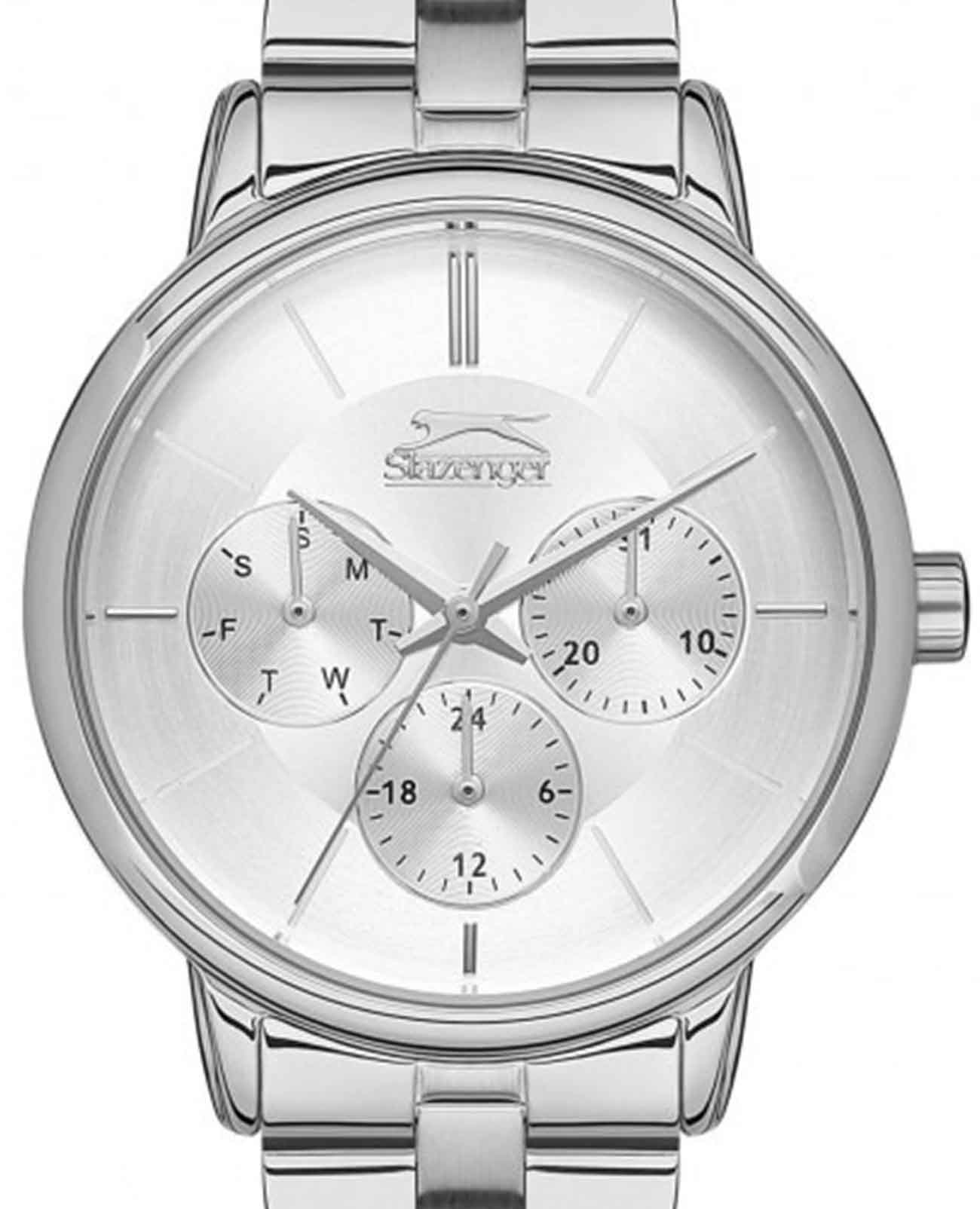 Эти элегантные женские часы Slazenger SL.09.2145.4.01 идеально подойдут для тех, кто ценит стиль и функциональность. Произведенные в Англии, они оснащены надежным кварцевым механизмом, который обеспечивает точное время. Корпус и браслет часов выполнены из металла, придающего изделию современный и изысканный вид. Минеральное стеклоМинеральное стеклоМинеральное стекло представляет собой искусственно выращенный минерал кварца. Такое стекло отличается особой устойчивостью к повреждениям и царапинам. Уступает по некоторым качествам сапфировому стеклу. защищает серебристый циферблат от царапин и повреждений, а водозащита уровня WR 30 позволяет использовать часы в условиях повышенной влажности.  Диаметр корпуса составляет 35 мм, а толщина — 9 мм, что делает их аккуратными и утонченными, идеально подходящими для женского запястья. Ширина браслета равна 16 мм, и он оснащен раскладной застёжкойРаскладная застёжкаТакой тип застёжки используется только на браслетах из металла. Она никогда не раскрывается полностью, происходит разделение на 2 и более частей. Раскладывающая застёжка снизит вероятность потери часов к минимуму. для удобства ношения. Часы оснащены дополнительными функциями: на малых циферблатах отображаются дата и день недели, а также текущее время в 24-часовом формате, что добавляет удобства в использовании. Эти часы станут отличным дополнением к любому образу, подчеркивая вашу индивидуальность и утонченность.