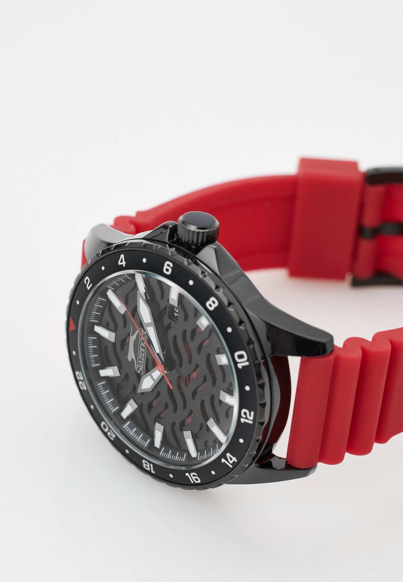 Часы Slazenger SL.09.2224.1.05 — это надежные и стильные наручные часы, созданные в Англии и оснащённые высокоточным кварцевым механизмом. Корпус выполнен из металла с черным IP-покрытиемIP-покрытиеМетод ионного напыления. Демонстрирует повышенную устойчивость к истиранию, окислению и химическим веществам. Под воздействием высокого давления и температуры около 1500°C молекулы металла надёжно соединяются с частицами корпуса часов. и гармонично сочетается с красным резиновым ремешком шириной 22 мм, который обеспечивает удобную посадку и фиксируется классической застежкой. Минеральное стеклоМинеральное стеклоМинеральное стекло представляет собой искусственно выращенный минерал кварца. Такое стекло отличается особой устойчивостью к повреждениям и царапинам. Уступает по некоторым качествам сапфировому стеклу. защищает циферблат от царапин, а благодаря водозащите класса WR 50 часы не боятся брызг и дождя. БезельБезельВнешний ободок, закрепляющий стекло. В спортивных часах так называется поворотное кольцо с делениями на циферблате, выполняет роль таймера – замеряет отрезки времени на шкале. Неподвижный безель – элемент декора. Однонаправленно вращающийся безель на дайверских часах позволяет фиксировать моменты погружения и выныривания на поверхность. с черным IP-покрытиемIP-покрытиеМетод ионного напыления. Демонстрирует повышенную устойчивость к истиранию, окислению и химическим веществам. Под воздействием высокого давления и температуры около 1500°C молекулы металла надёжно соединяются с частицами корпуса часов. придает часам дополнительную прочность и устойчивость к износу. Модель отличается крупным корпусом диаметром 45 мм и толщиной 12 мм, вес изделия — 80 грамм. Стрелки и метки снабжены люминесцентным покрытиемЛюминесцентное покрытиеПозволяет считывать показания времени в темноте. Производители наносят на стрелки, часовые индексы, безель или поверхность циферблата светонакопительный состав, дающий холодное свечение., что позволяет легко считывать время в темноте, а также есть окошко даты и защищённая заводная головка. Эта модель станет отличным выбором для тех, кто ценит функциональность, надежность и современный дизайн.